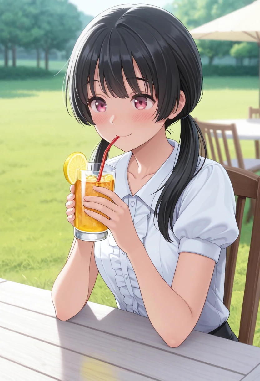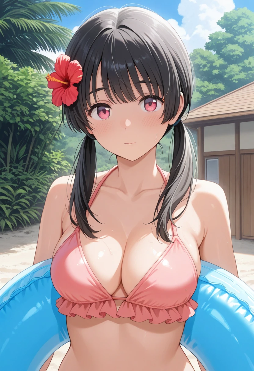 Trigger Words: hatsuayu uka, long hair, black hair, pink eyes, twintails