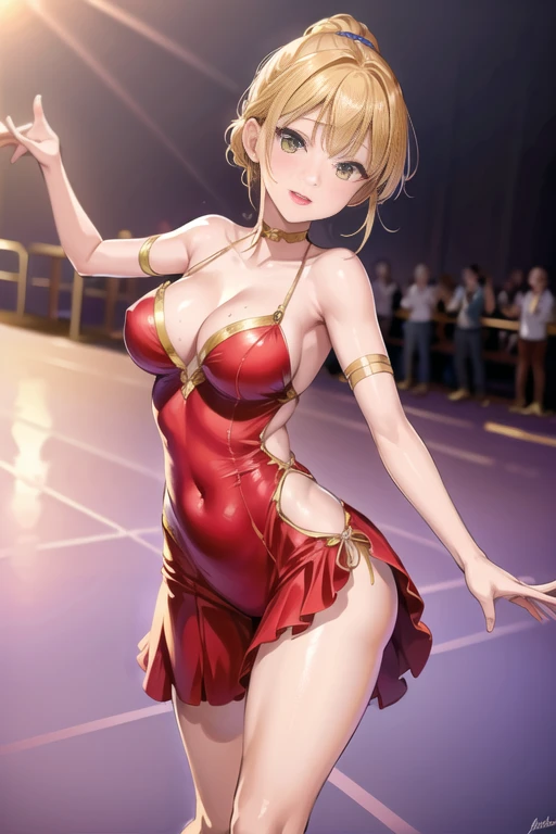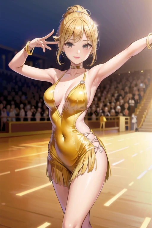 Keys: wearing latin_dance_dress, dance floor