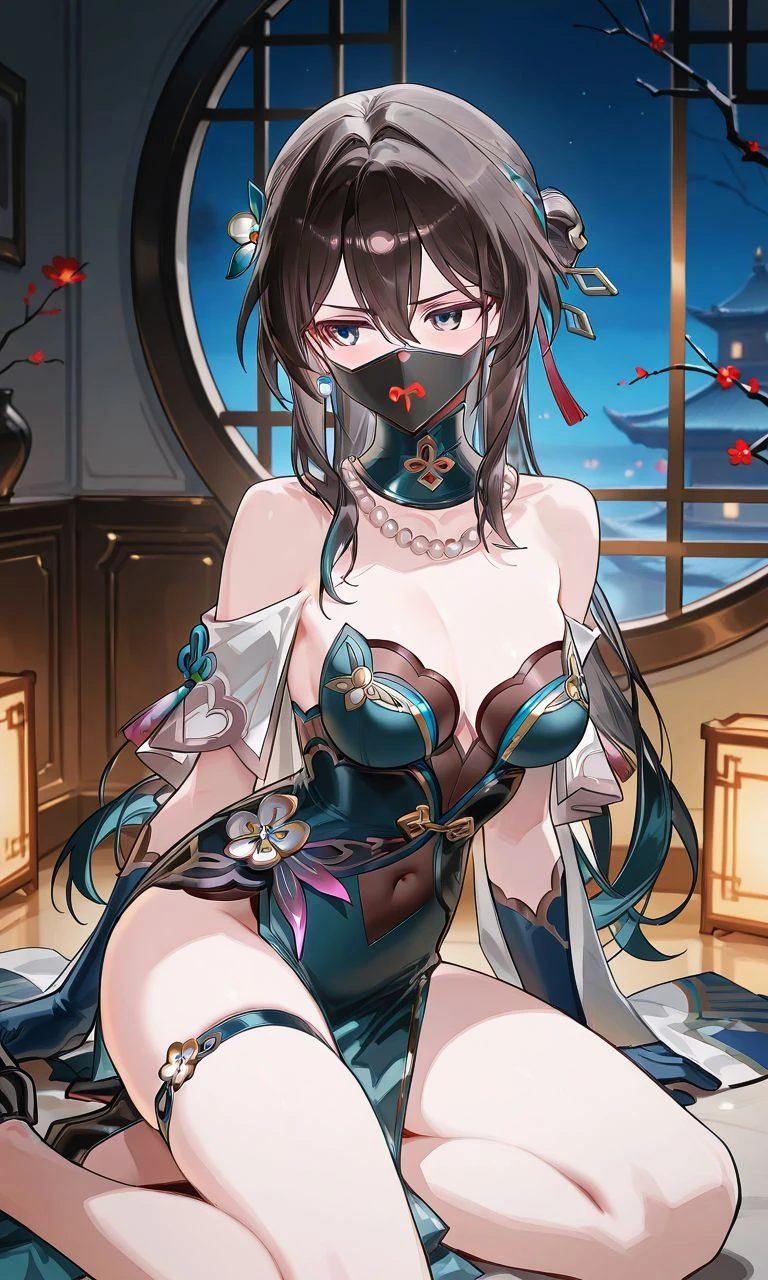 MCNL_concept, mask, mouth mask, covered mouth, black mask, posture collar, collar, mask gag, covered nose, lock print, print mask,