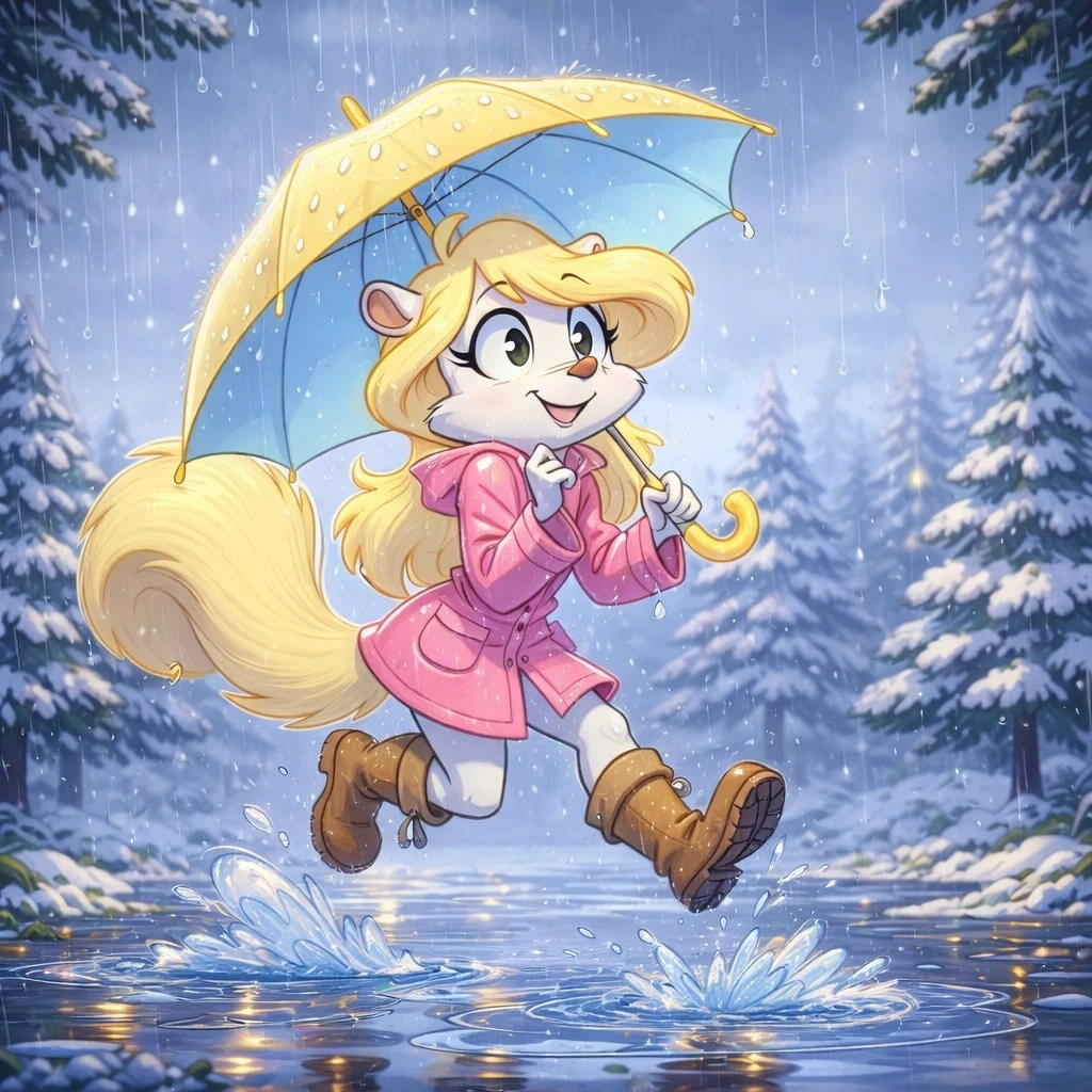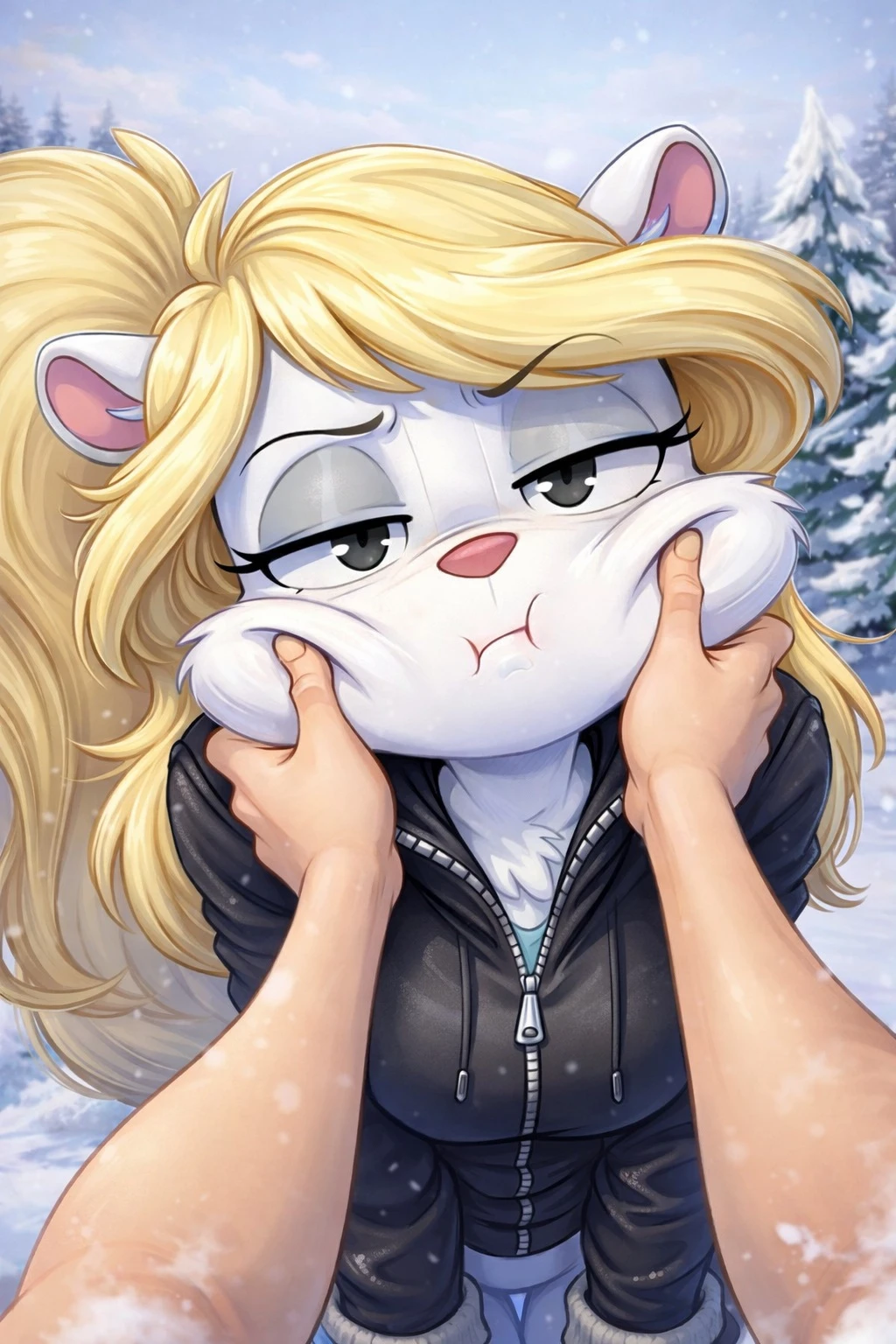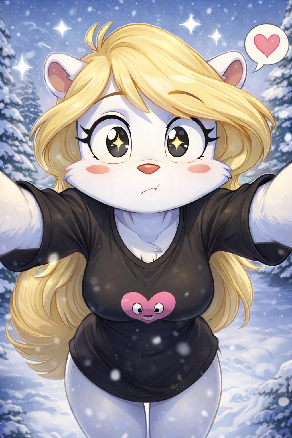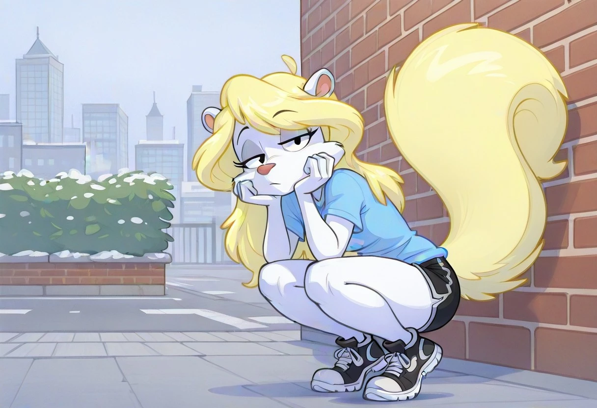 minerva_mink, 1girl, solo, furry, furry female, blonde hair, long hair, white fur, animal ears, animal nose, tail,