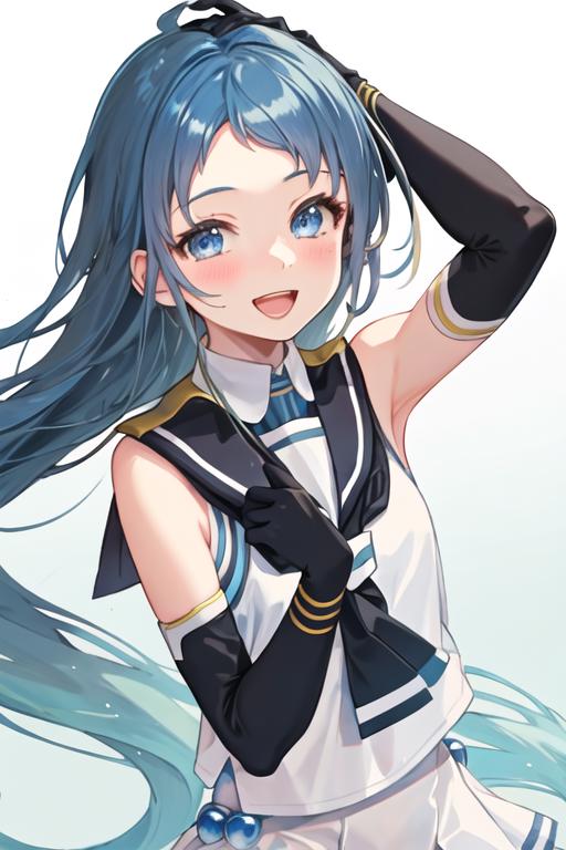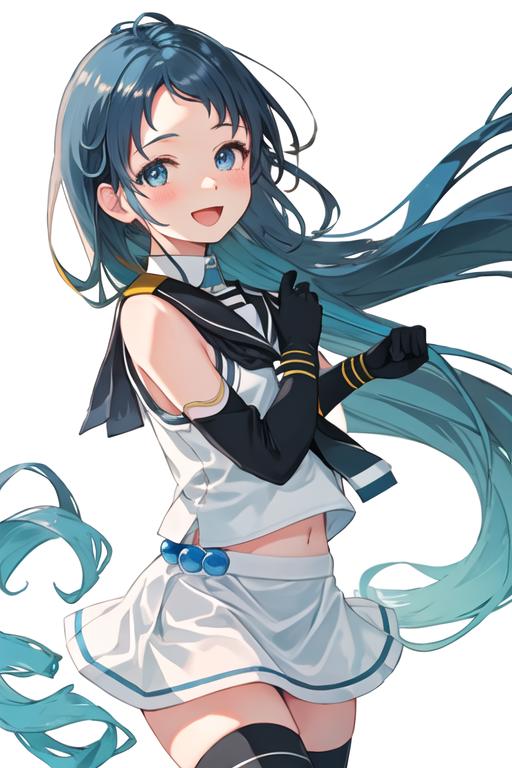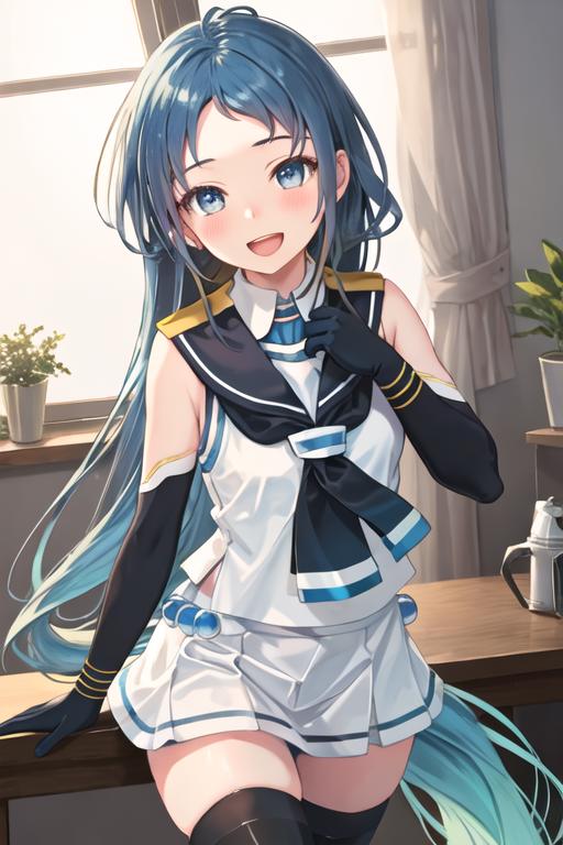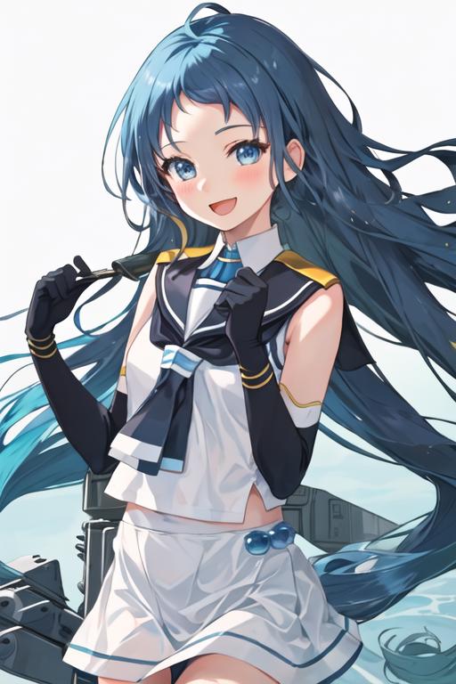 The trigger word is samidare_kantaicollection, and the recommended tags are best quality, masterpiece, highres, solo, {samidare_kantaicollection:1.15}, blue_hair, long_hair, blue_eyes, very_long_hair, bangs, serafuku, swept_bangs, sleeveless, smile, gradient_hair, open_mouth, blush, multicolored_hair.