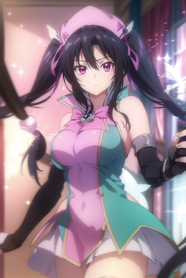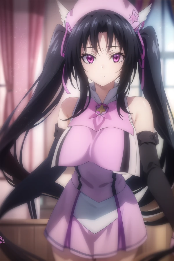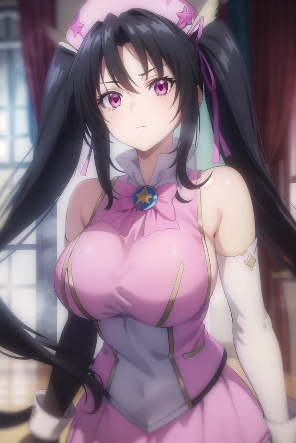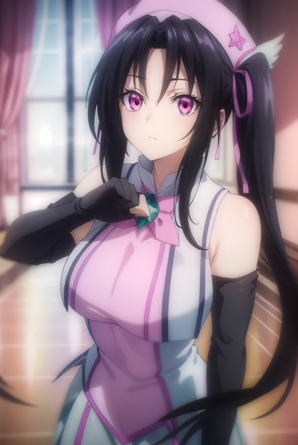 serafall leviathan, long hair, black hair, twintails, (pink eyes:1.5),