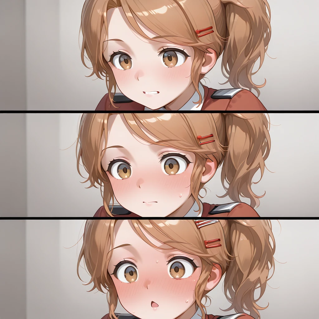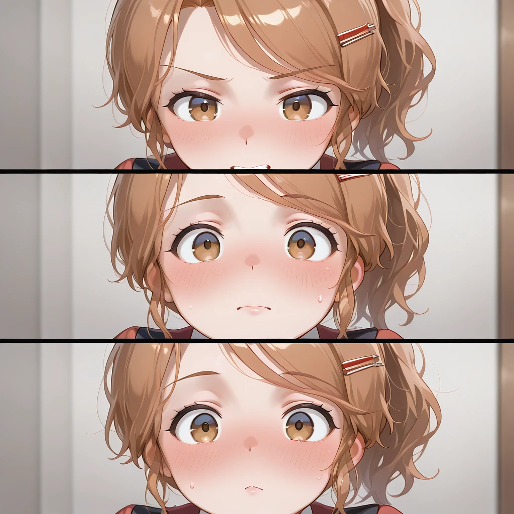 1girl,solo,tn_p,tunpoko\(meme\),3koma,clenched teeth,closed mouth,chestnut mouth,blush,