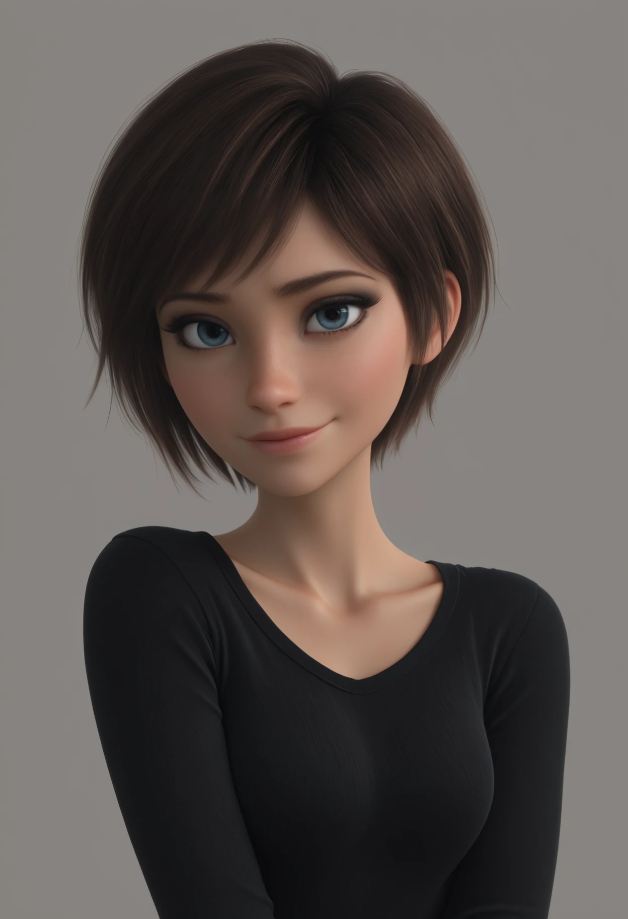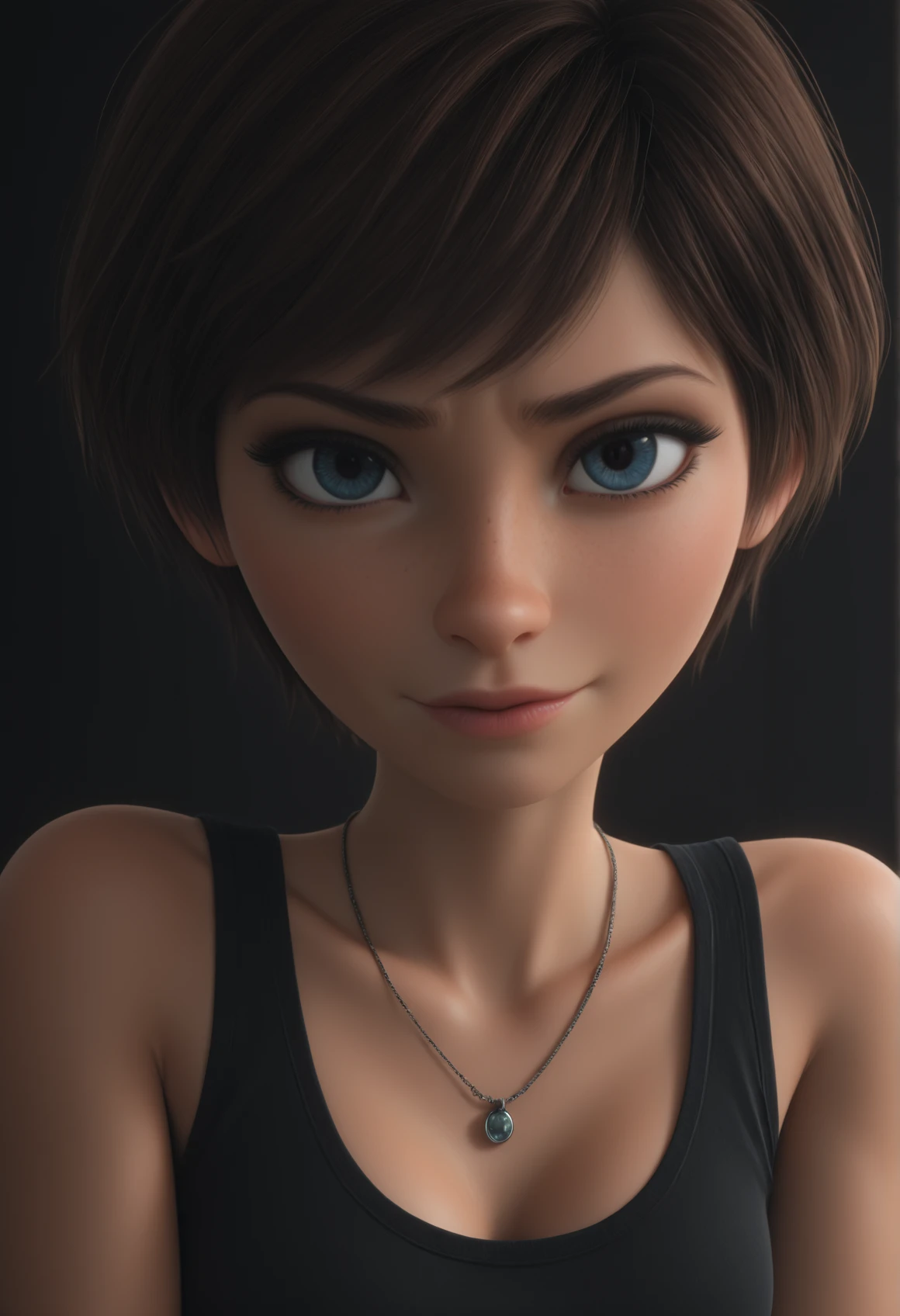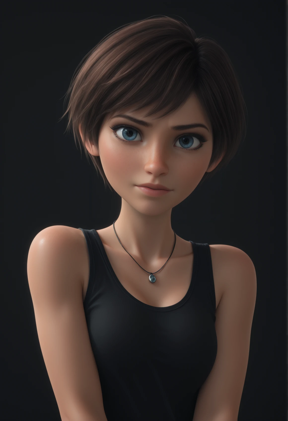Reb33ca, blue eyes, brown hair, short hair
