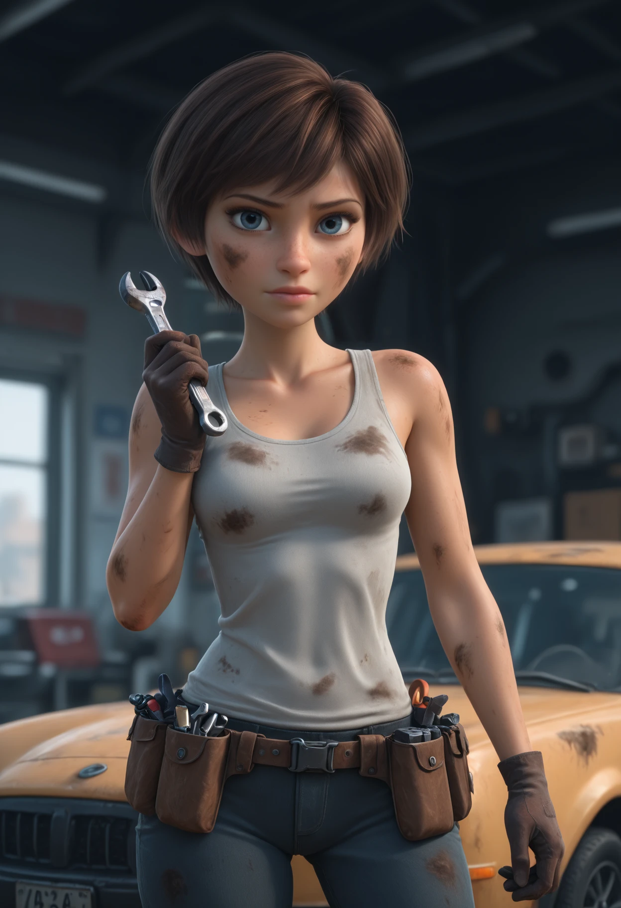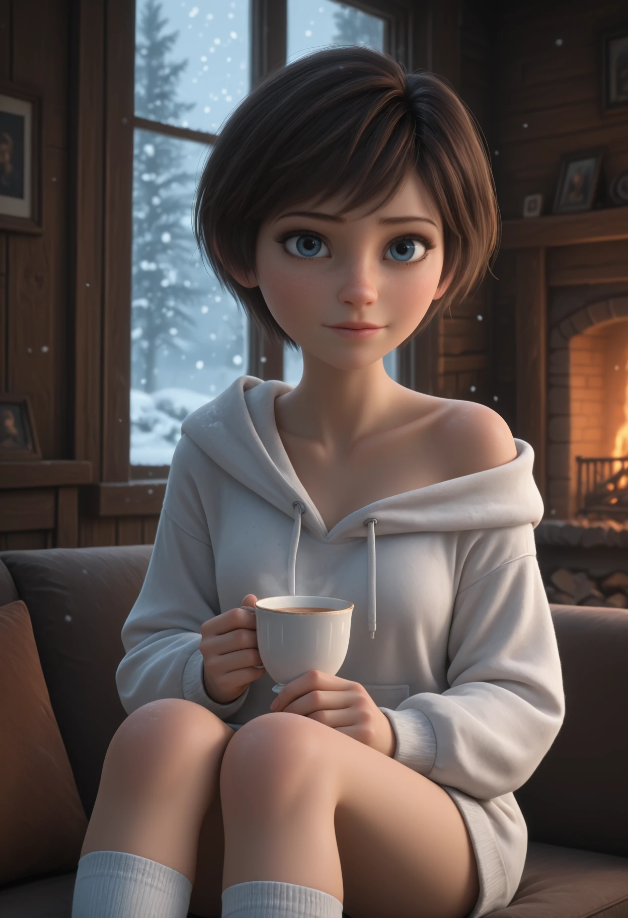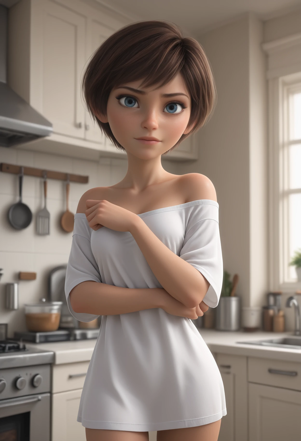 Reb33ca, blue eyes, brown hair, short hair