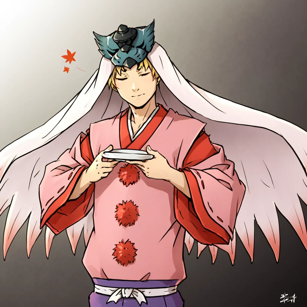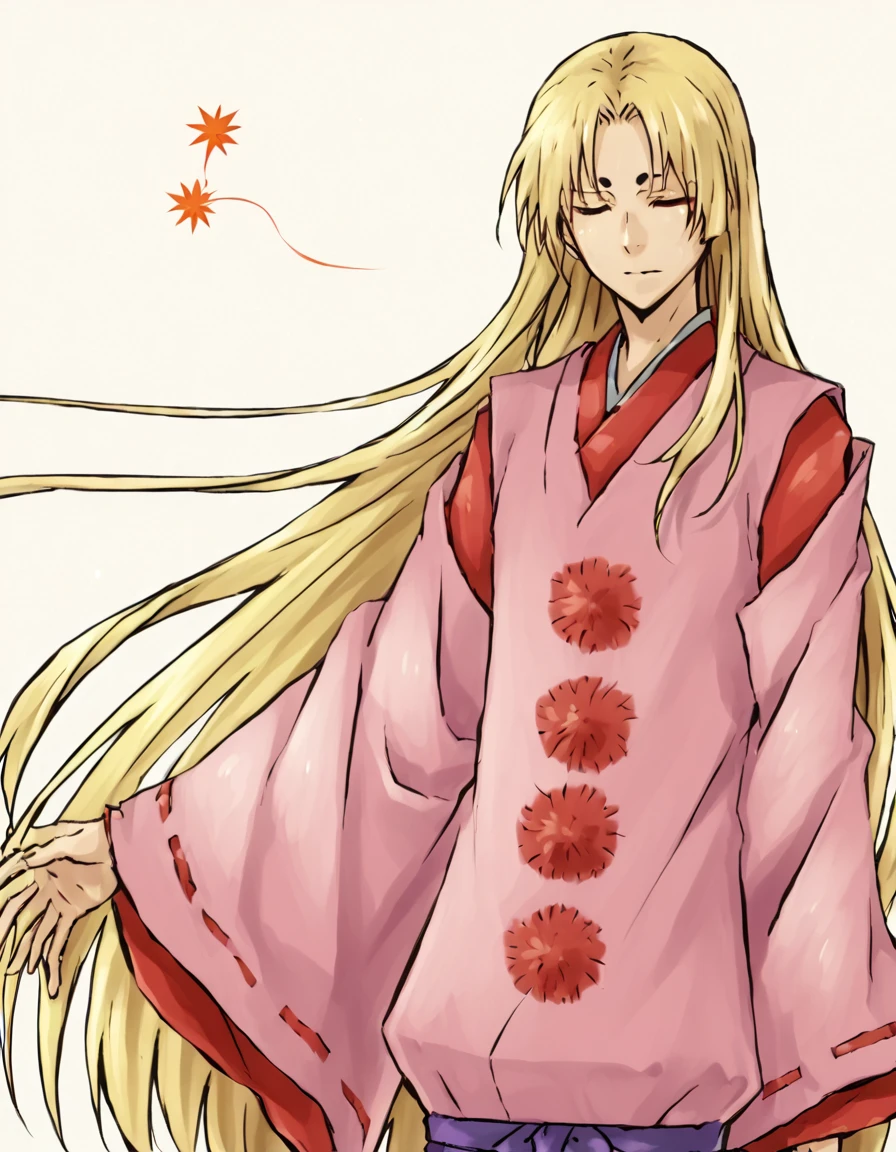 ush1waka, 1boy, solo, japanese clothes, geta, long hair, closed eyes