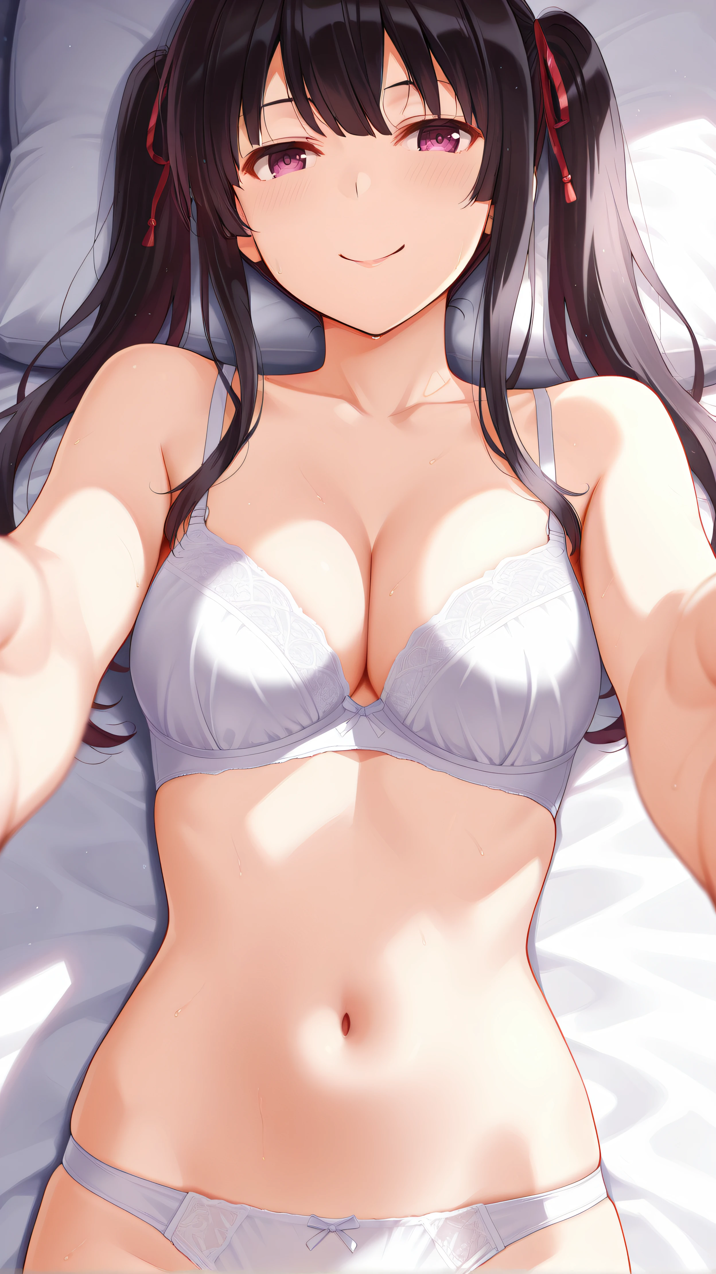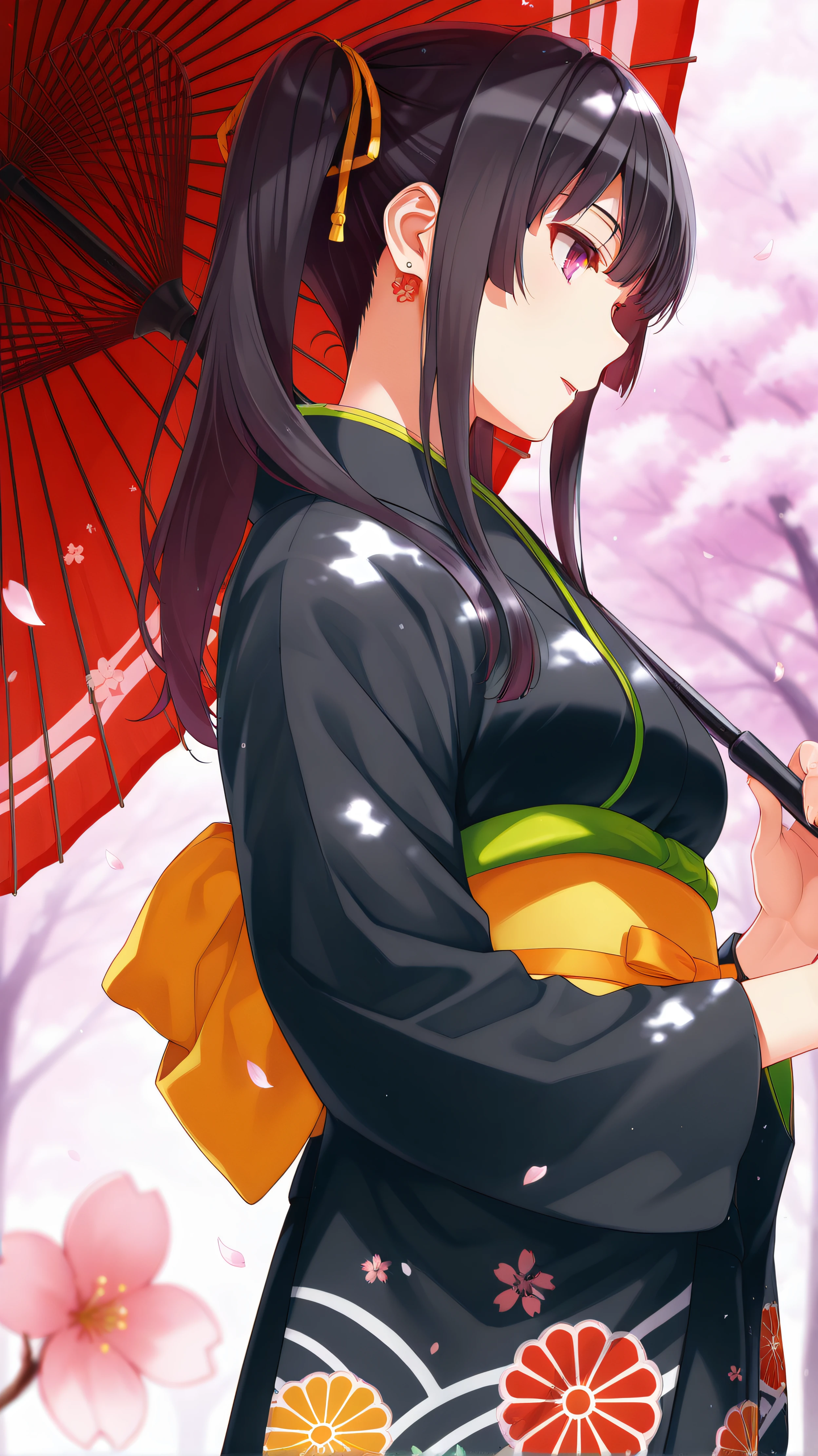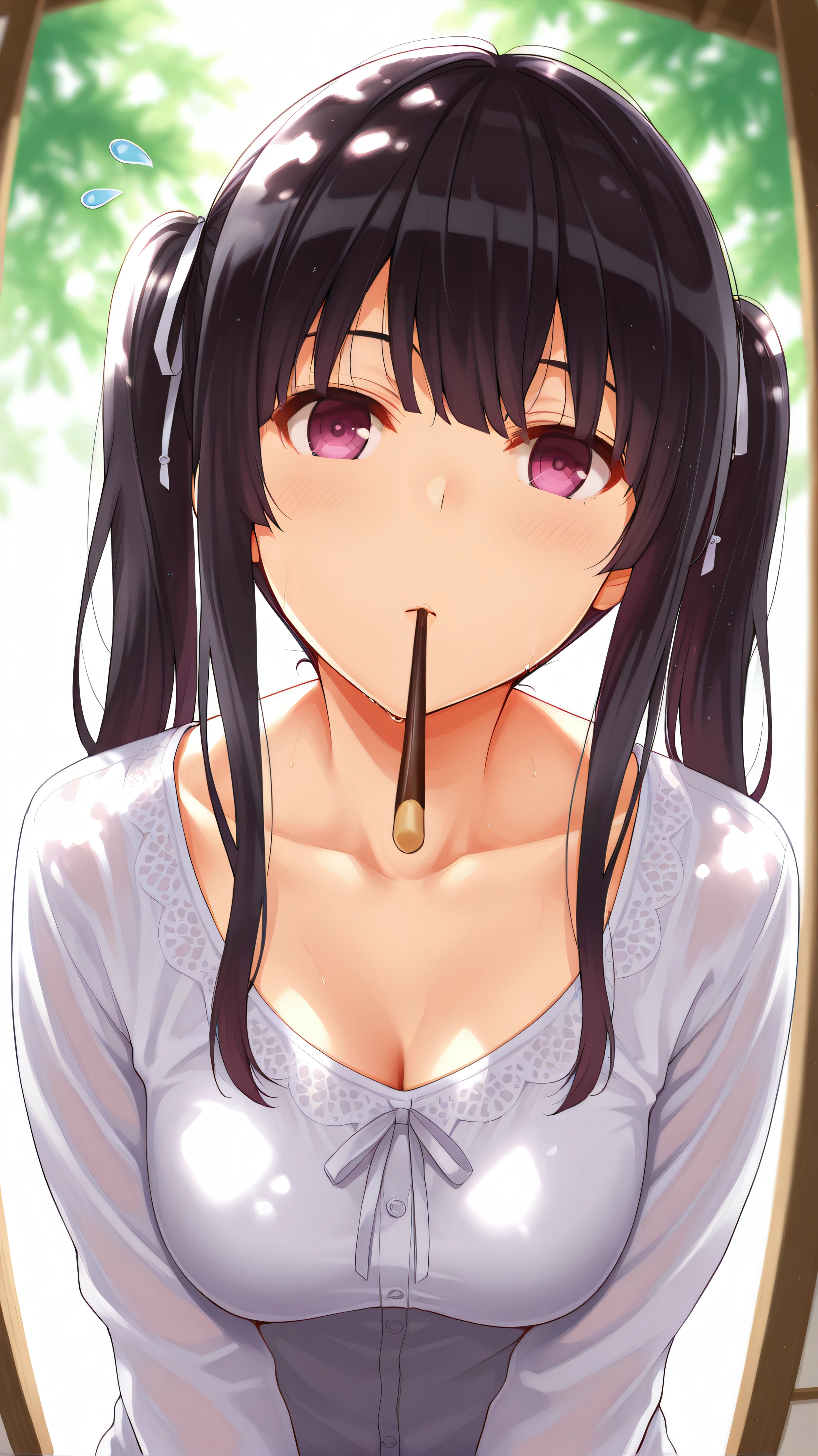 TAG:1girl,solo,sawamura sayuri, purple eyes, long hair, black hair, twintails,