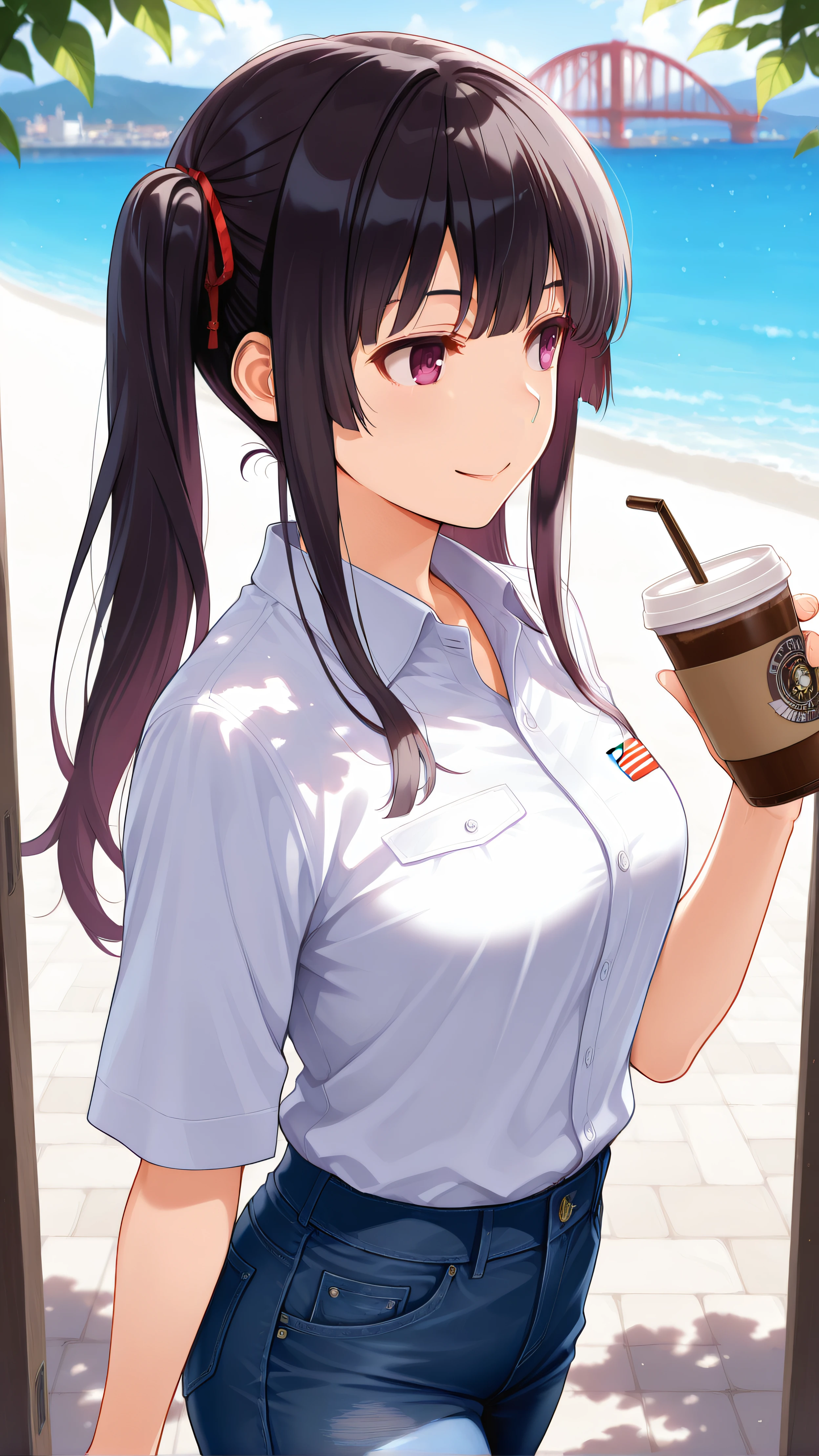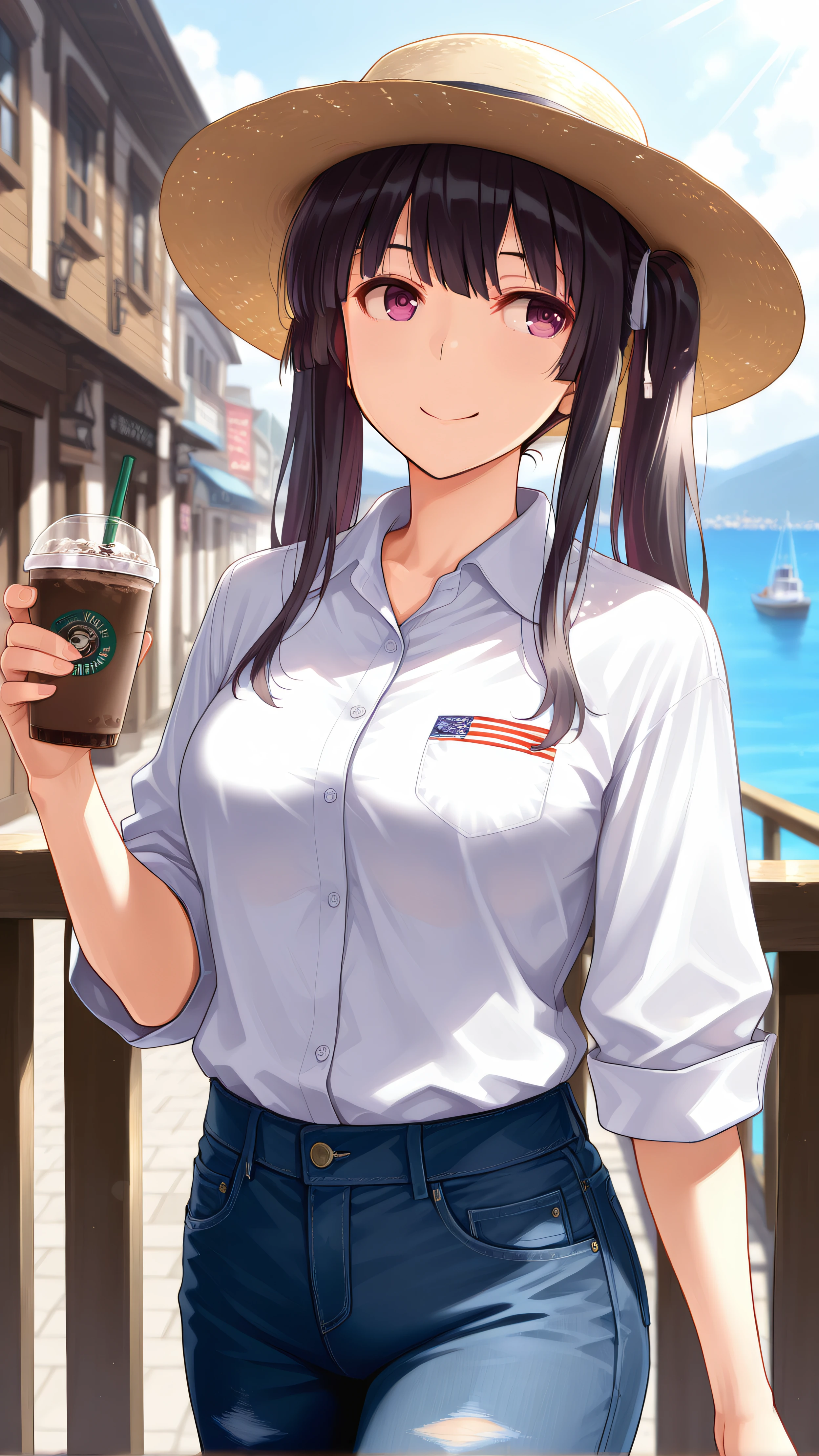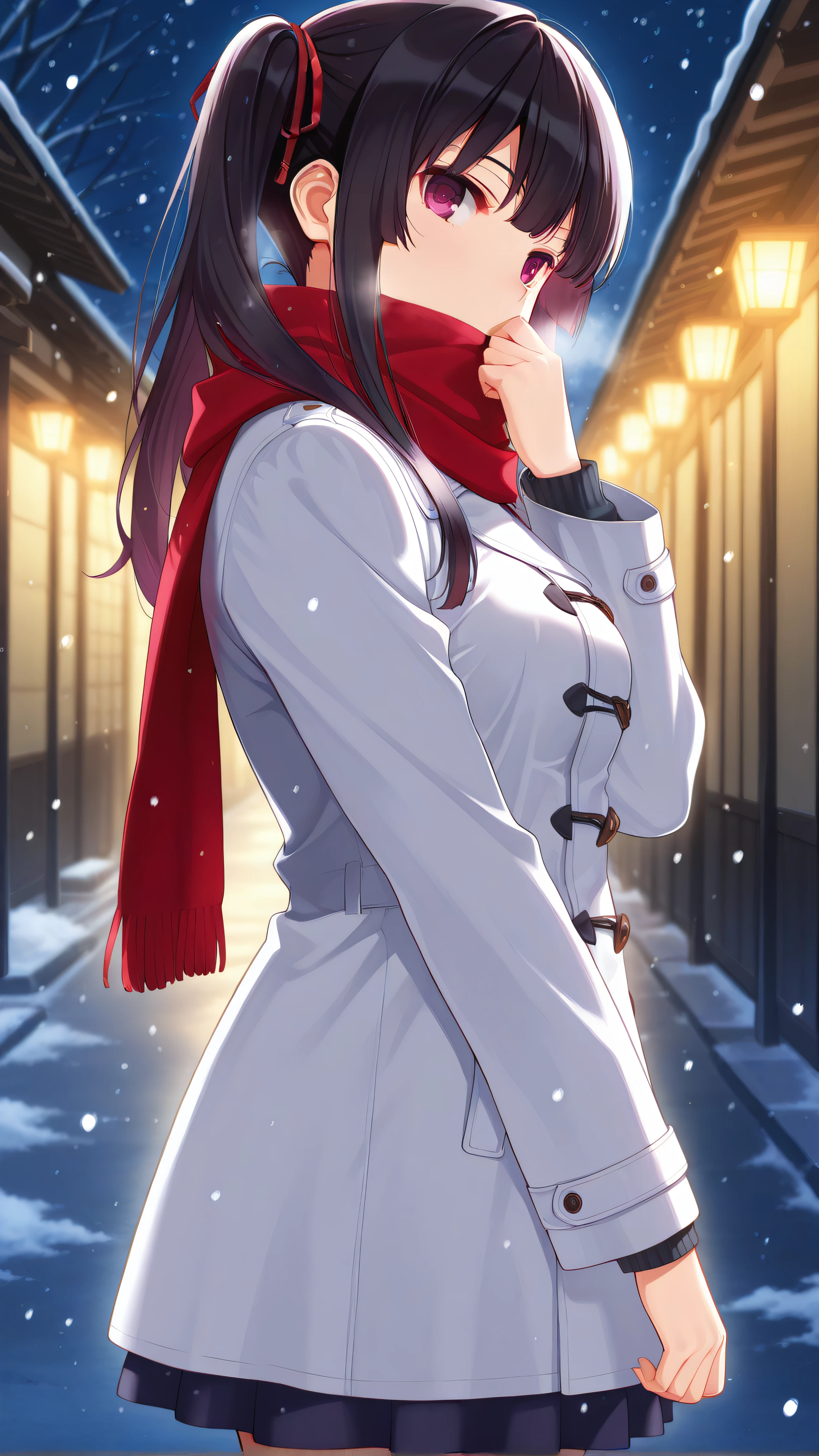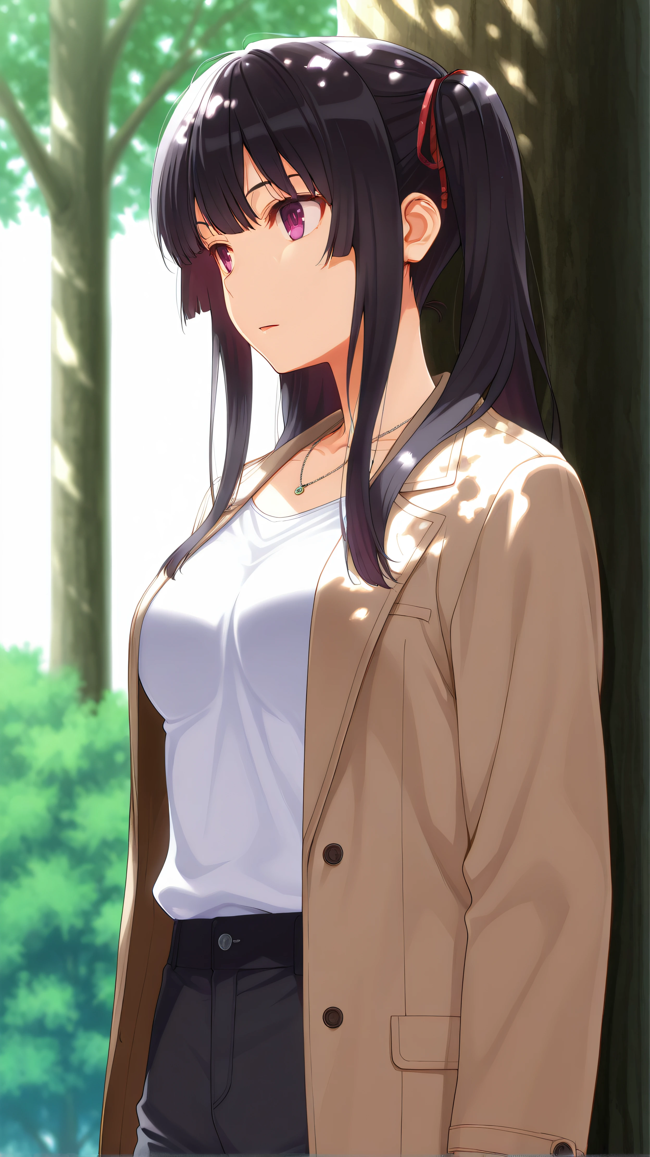 TAG:1girl,solo,sawamura sayuri, purple eyes, long hair, black hair, twintails,