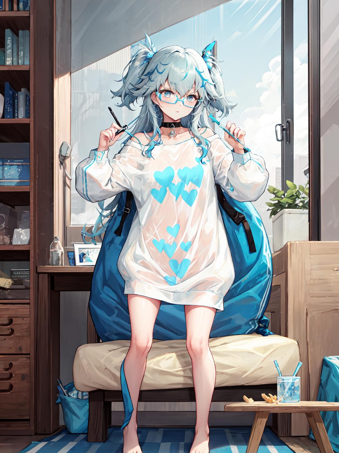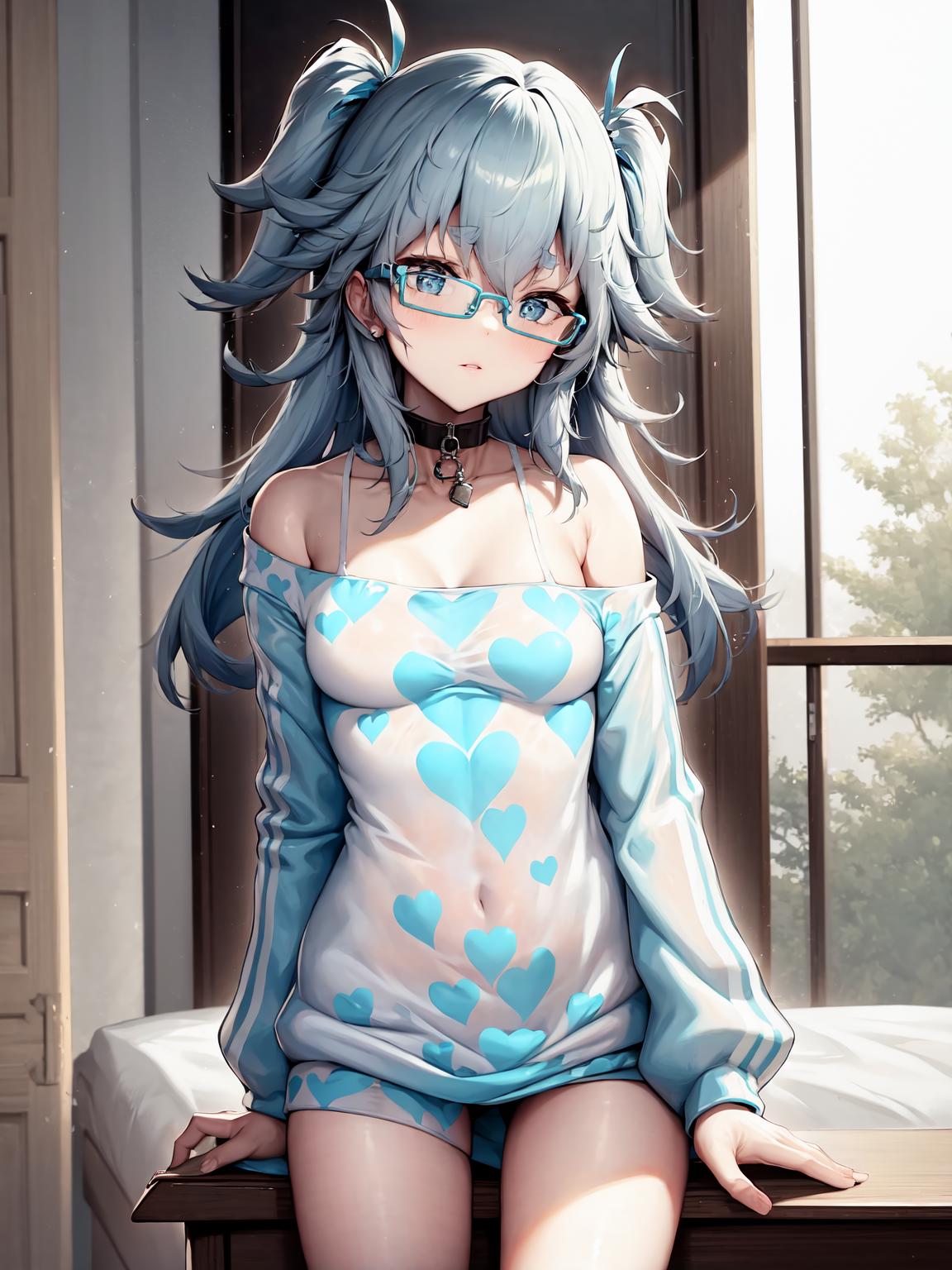 sleepwear, blue_hair, white_shirt, glasses,5.Phantom Thief of Champagne
