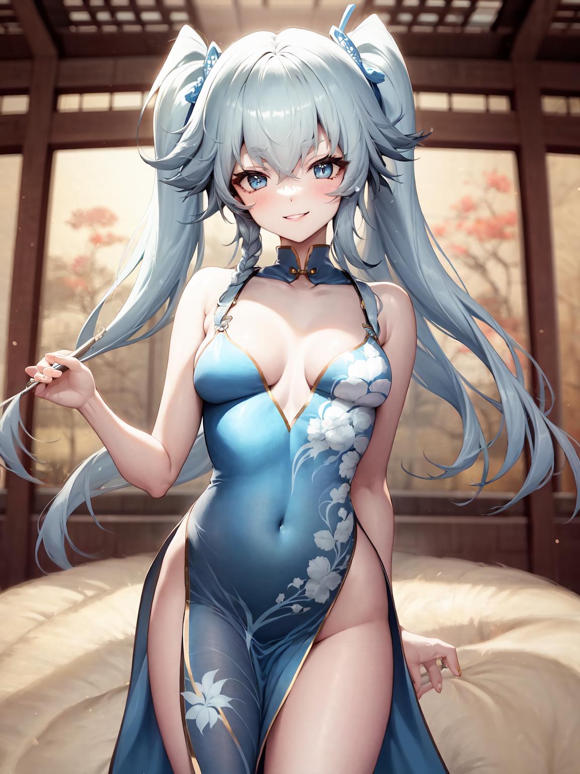 china_dress, blue_hair,4.Marvellous Herb Cake