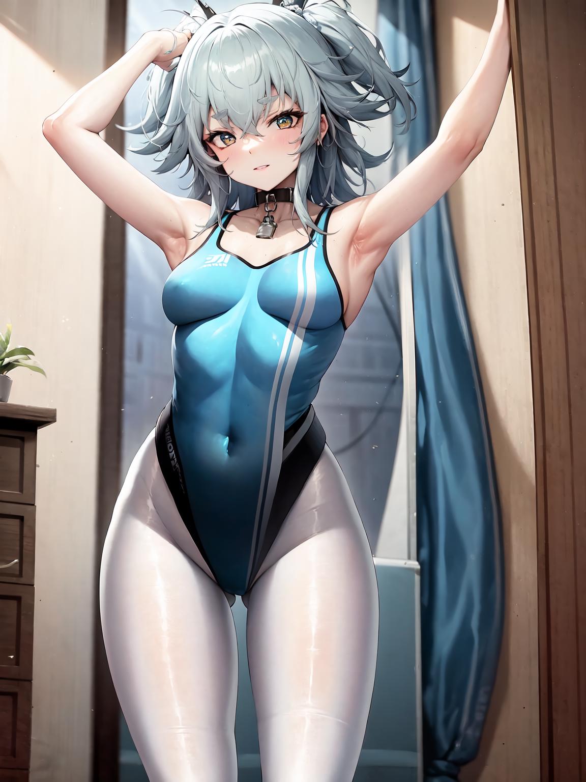 sportswear, blue_leotard, white_pantyhose,7.Neural Cloud Florence