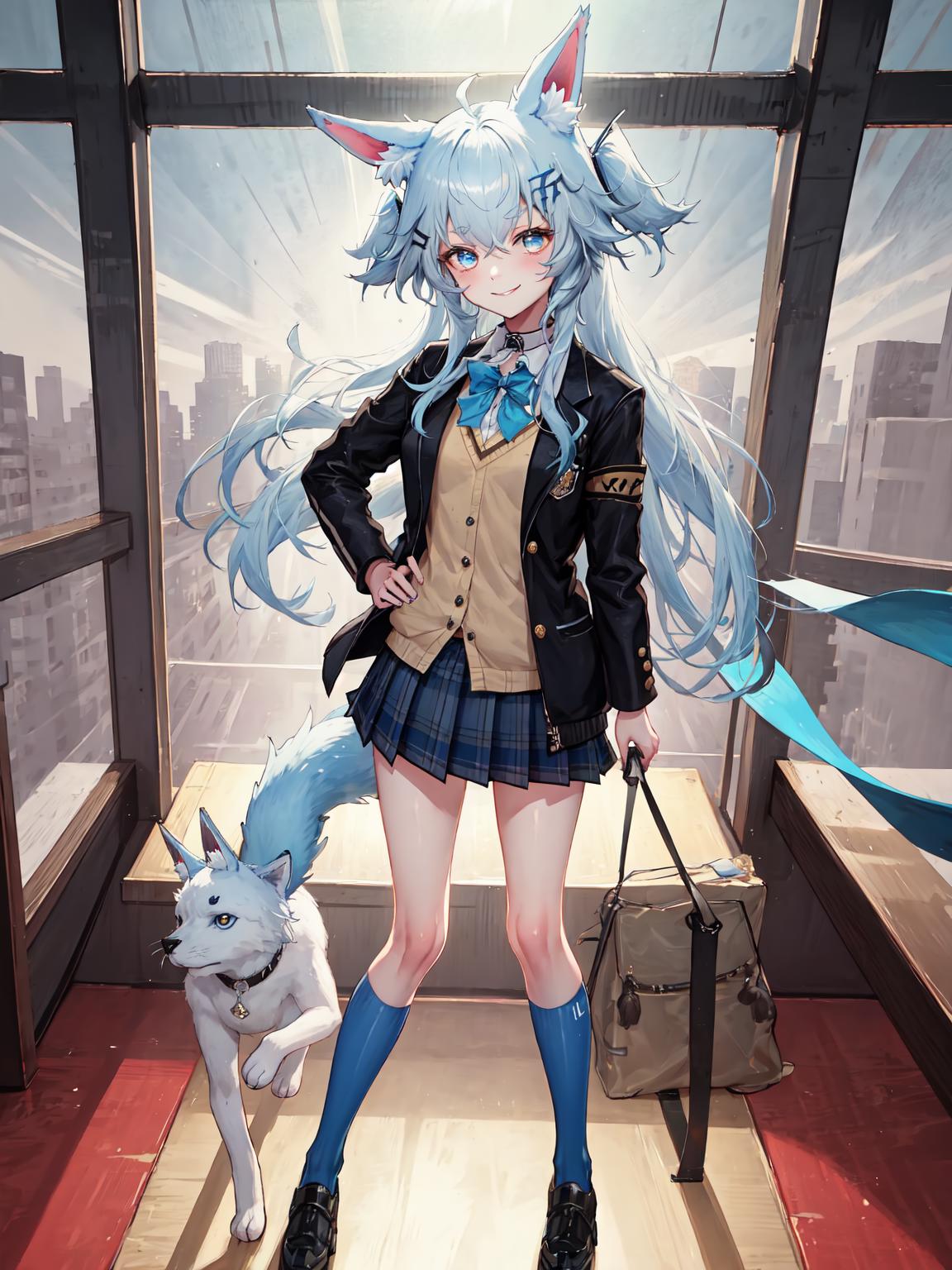 school_uniform, blue_hair, animal_ears,3.Larkspur's Allure