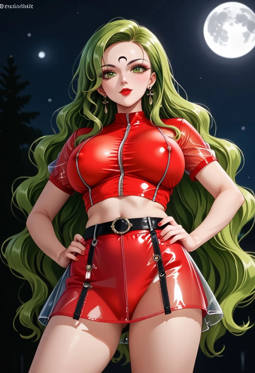 (clear plastic jacket, jacket with visible design details, plastic texture, black top, black pants, tight pants)
