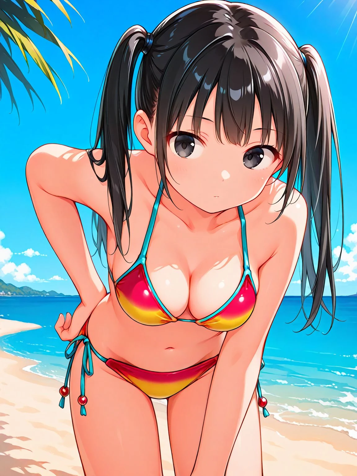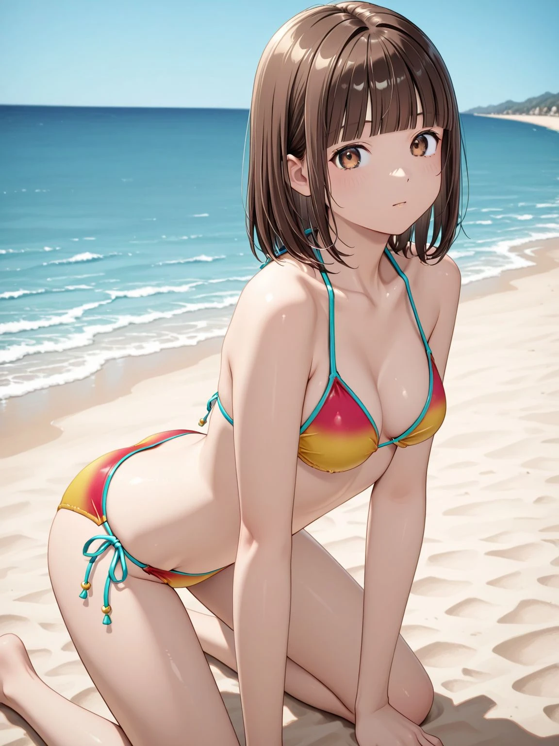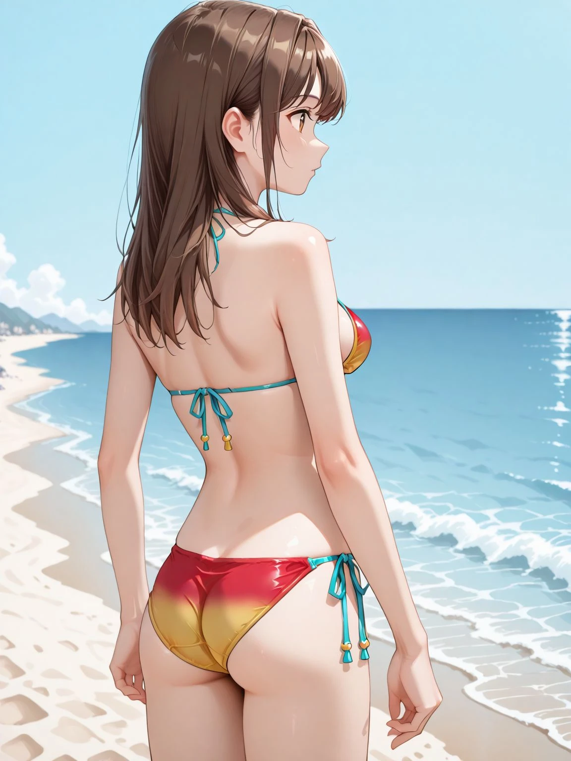 bikini,swimsuit,multicolored bikini,yellow bikini,red bikini,side-tie bikini bottom