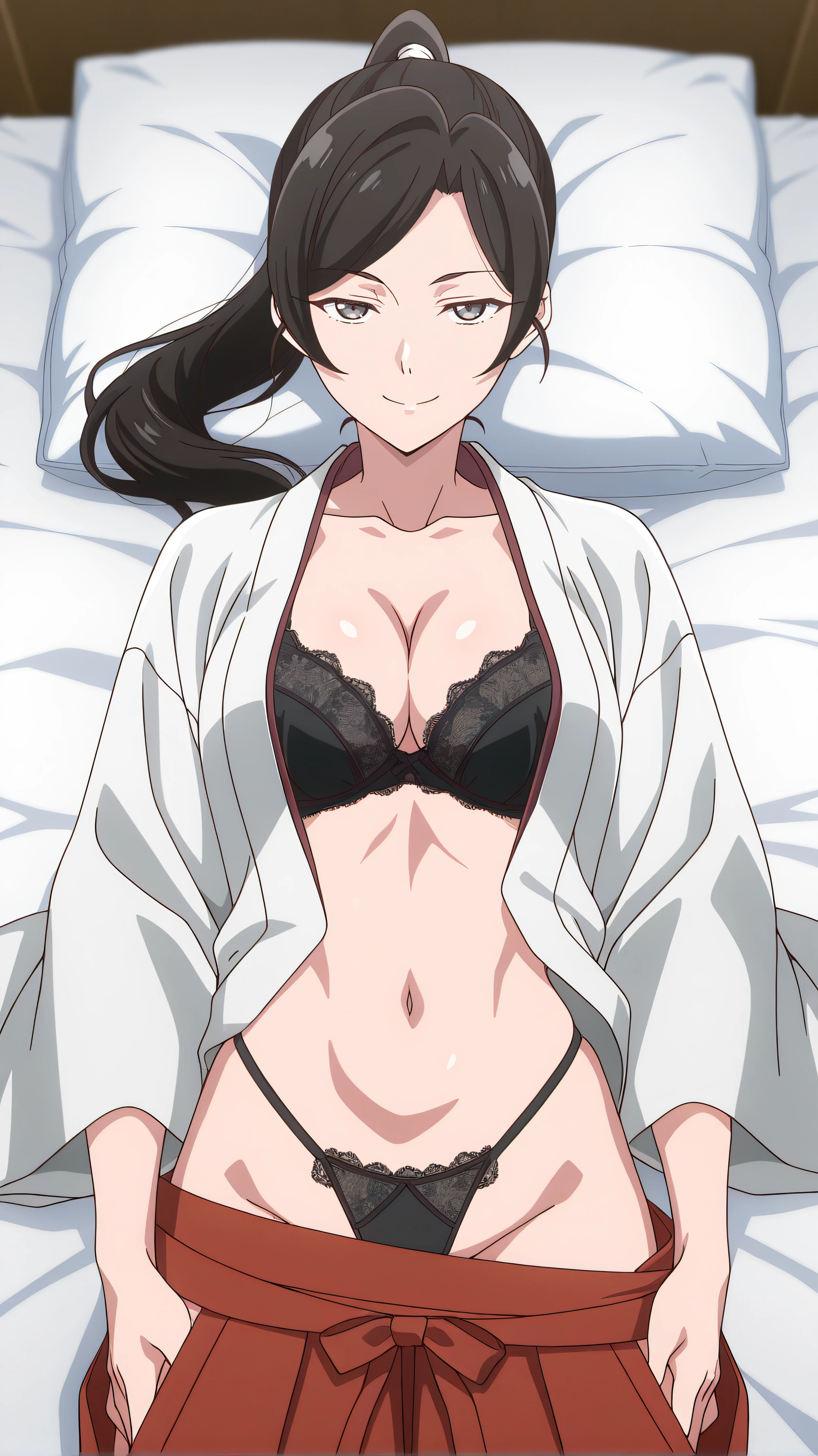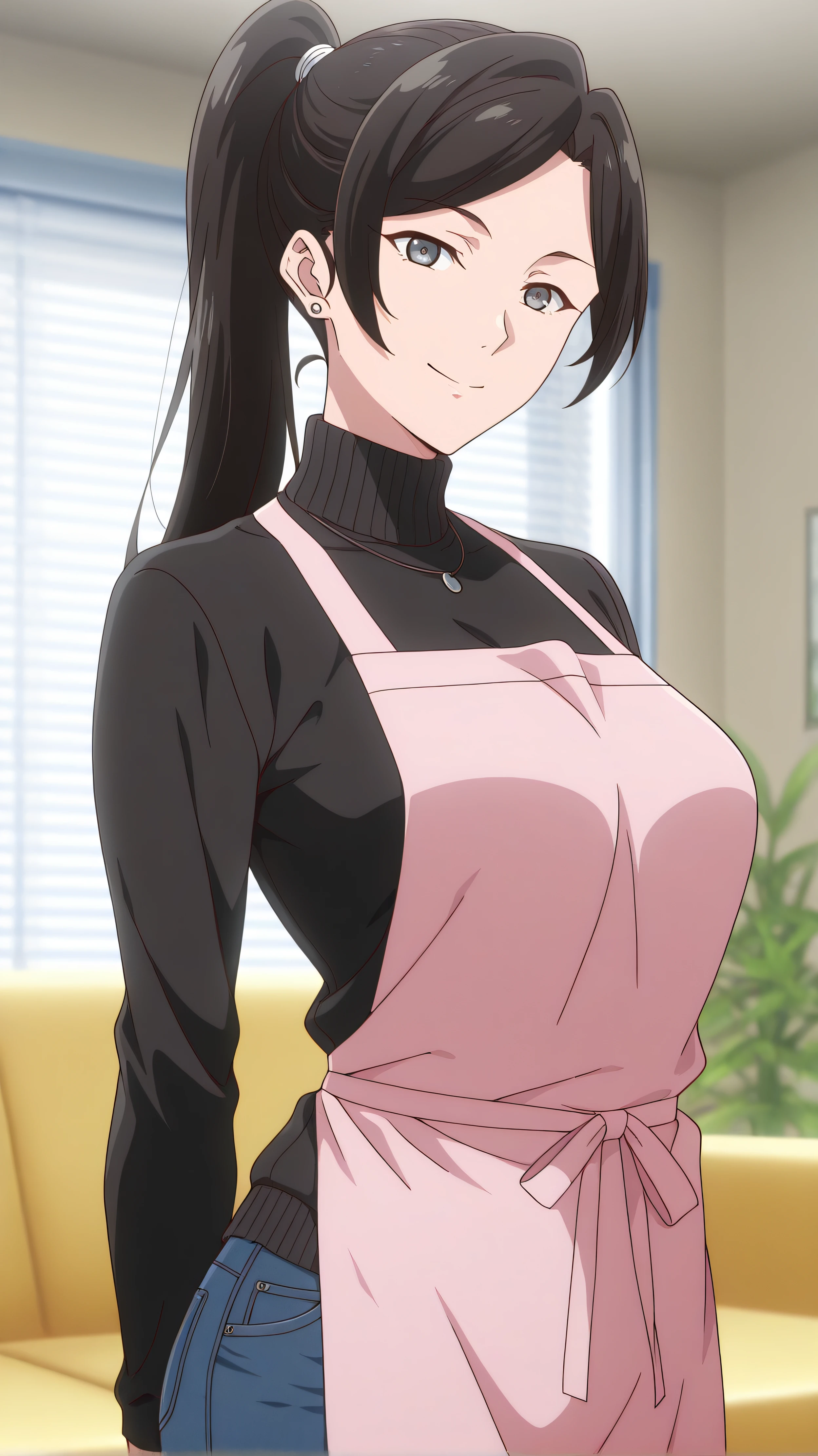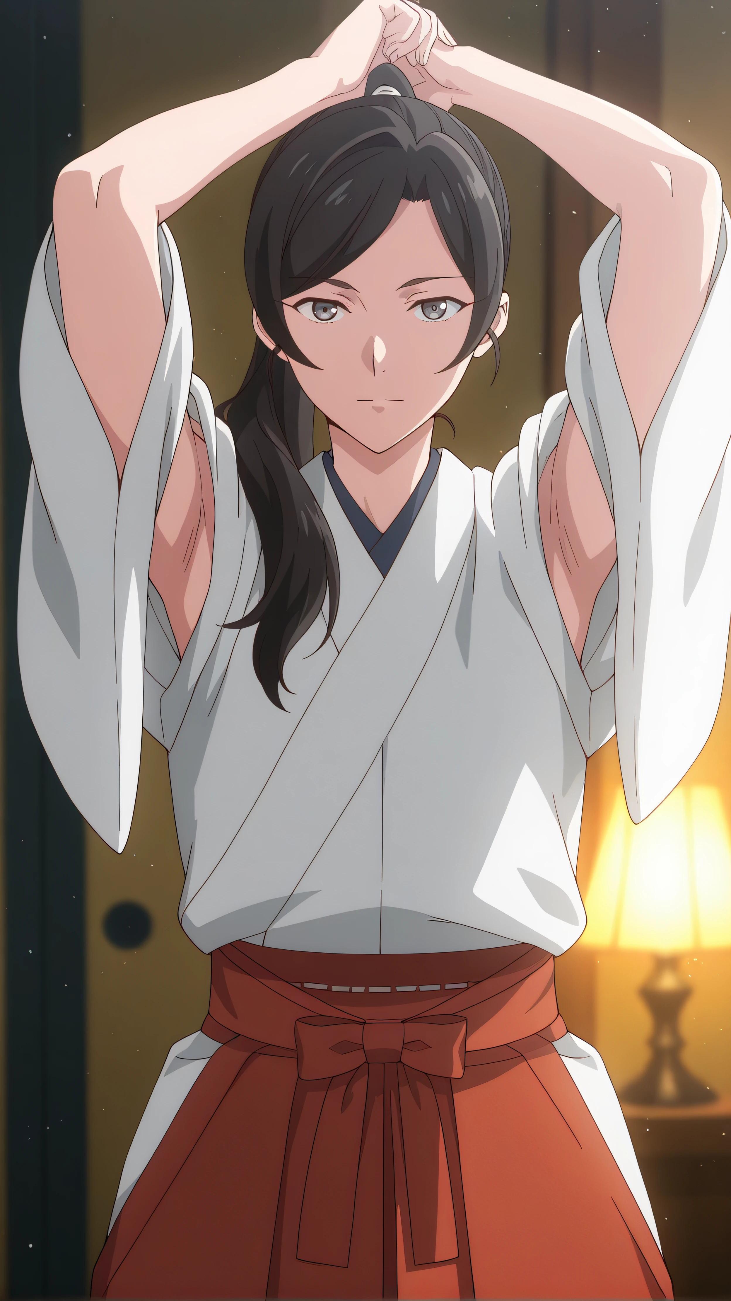 TAG:1girl,solo,nakazawa koto, ponytail, long hair, black hair, grey eyes,