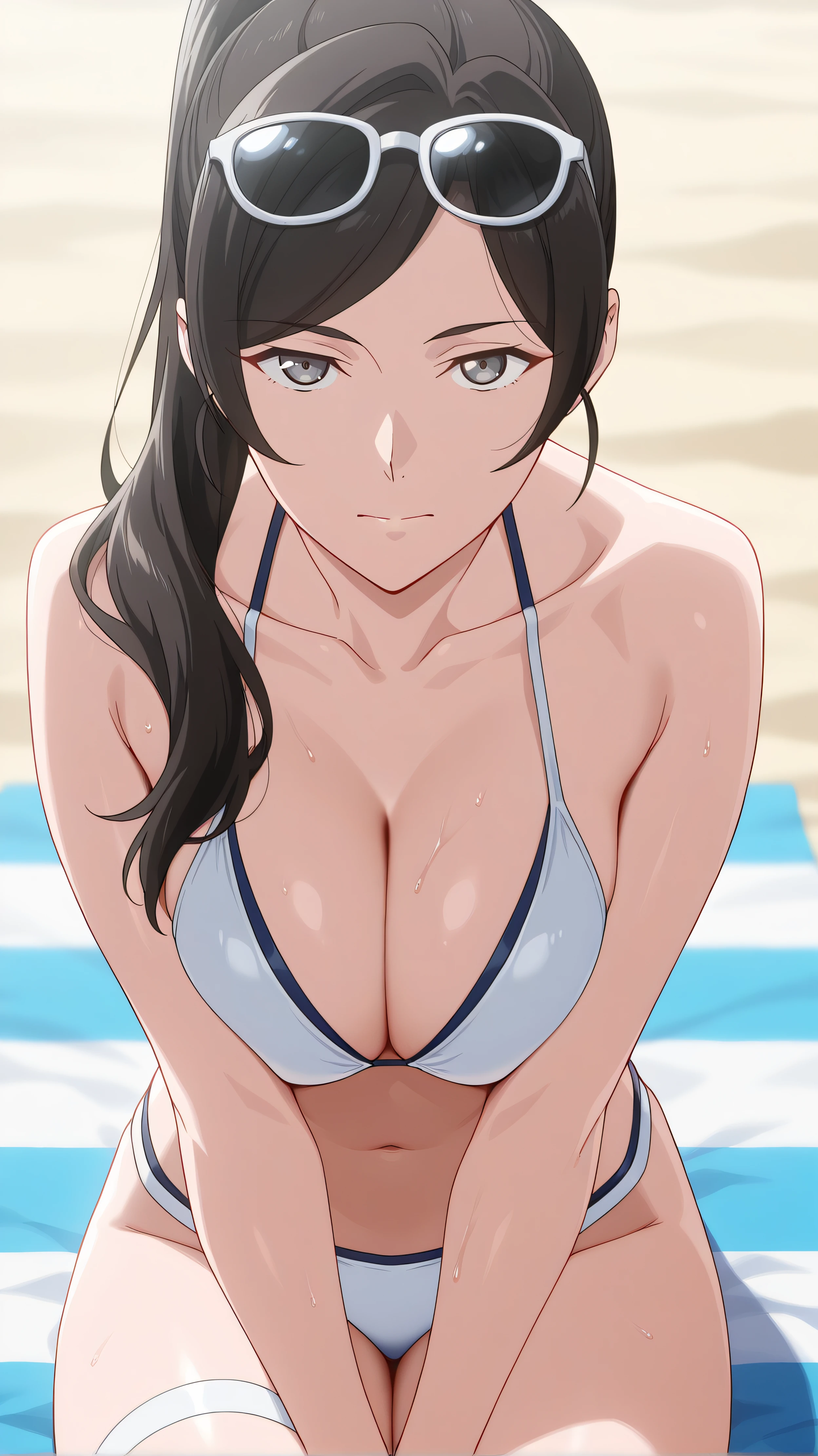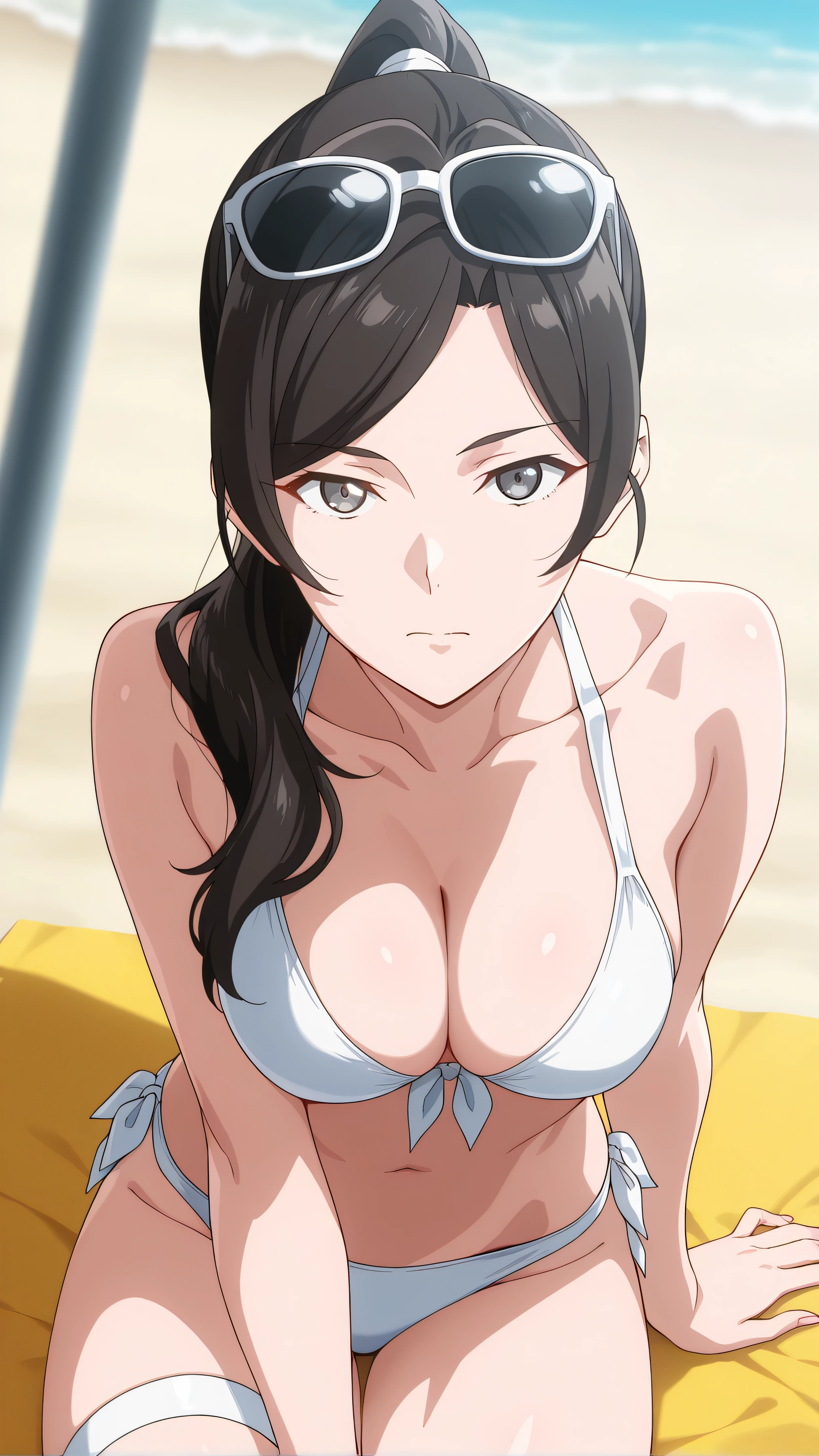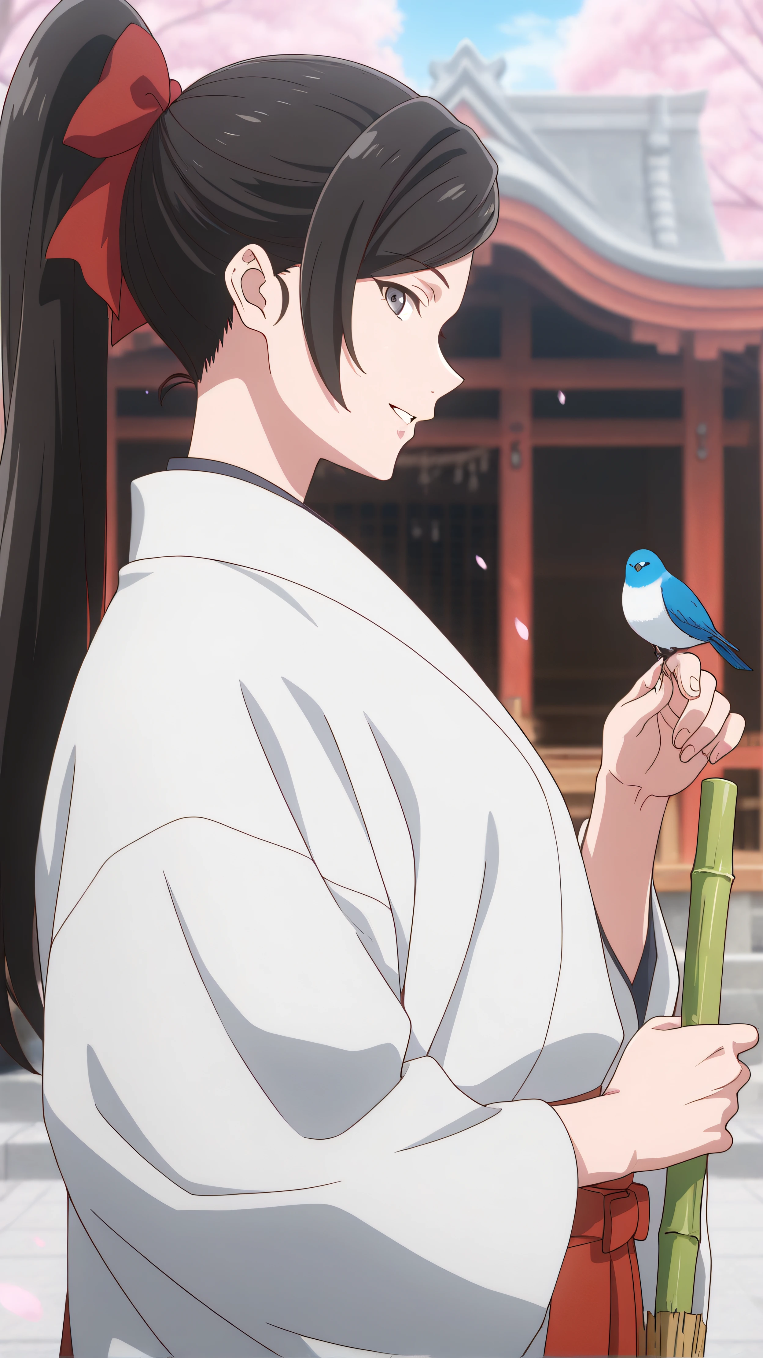TAG:1girl,solo,nakazawa koto, ponytail, long hair, black hair, grey eyes,