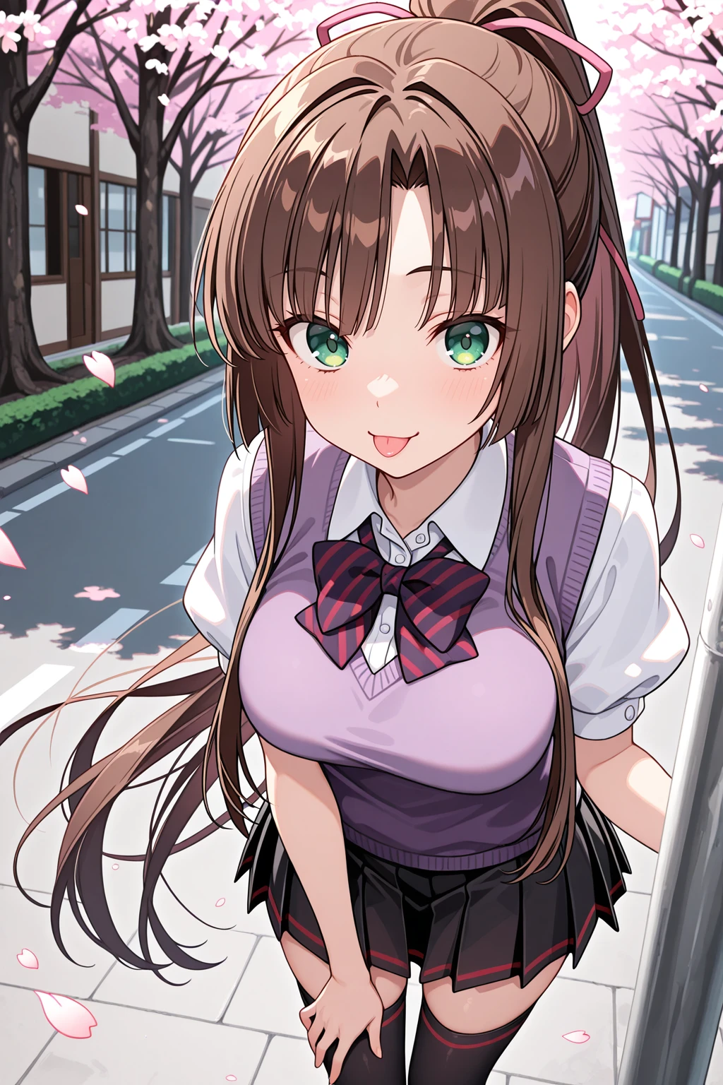 kirasaka sayaka, green eyes, very long hair, ponytail, sidelocks, high ponytail, brown hair ๐ข๐๐๐ณ๐ถ๐: