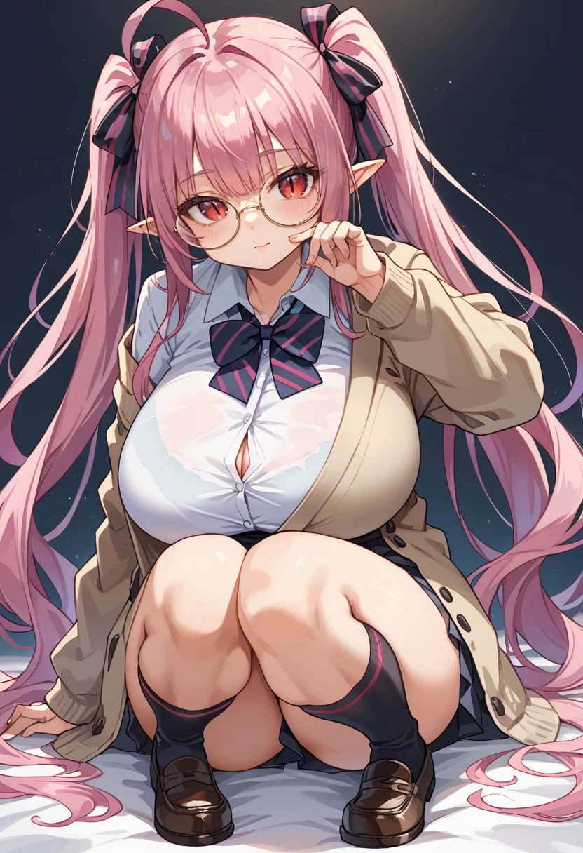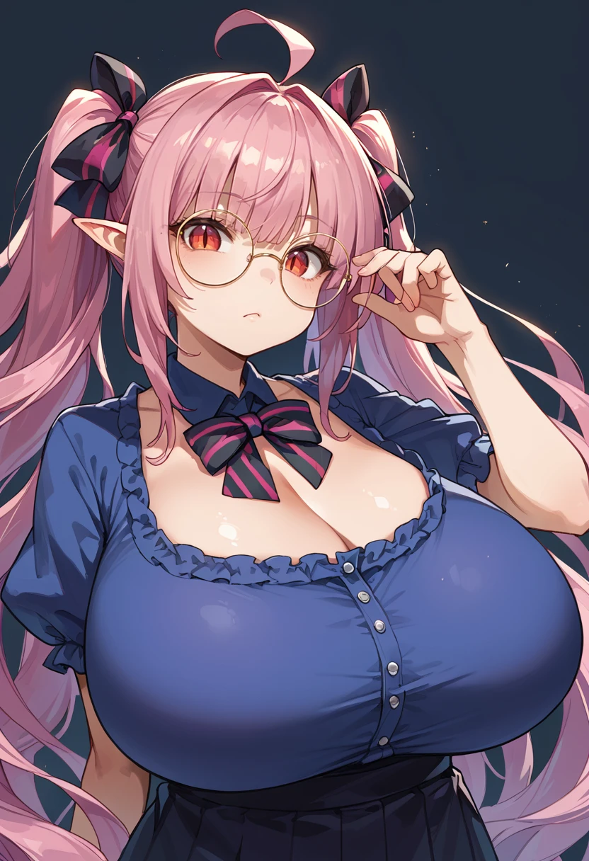 Embla, Red Eyes, Big Eyes, Slit Pupils, Pink Hair, Twintails, Ahoge, Absurdly Long Hair,
