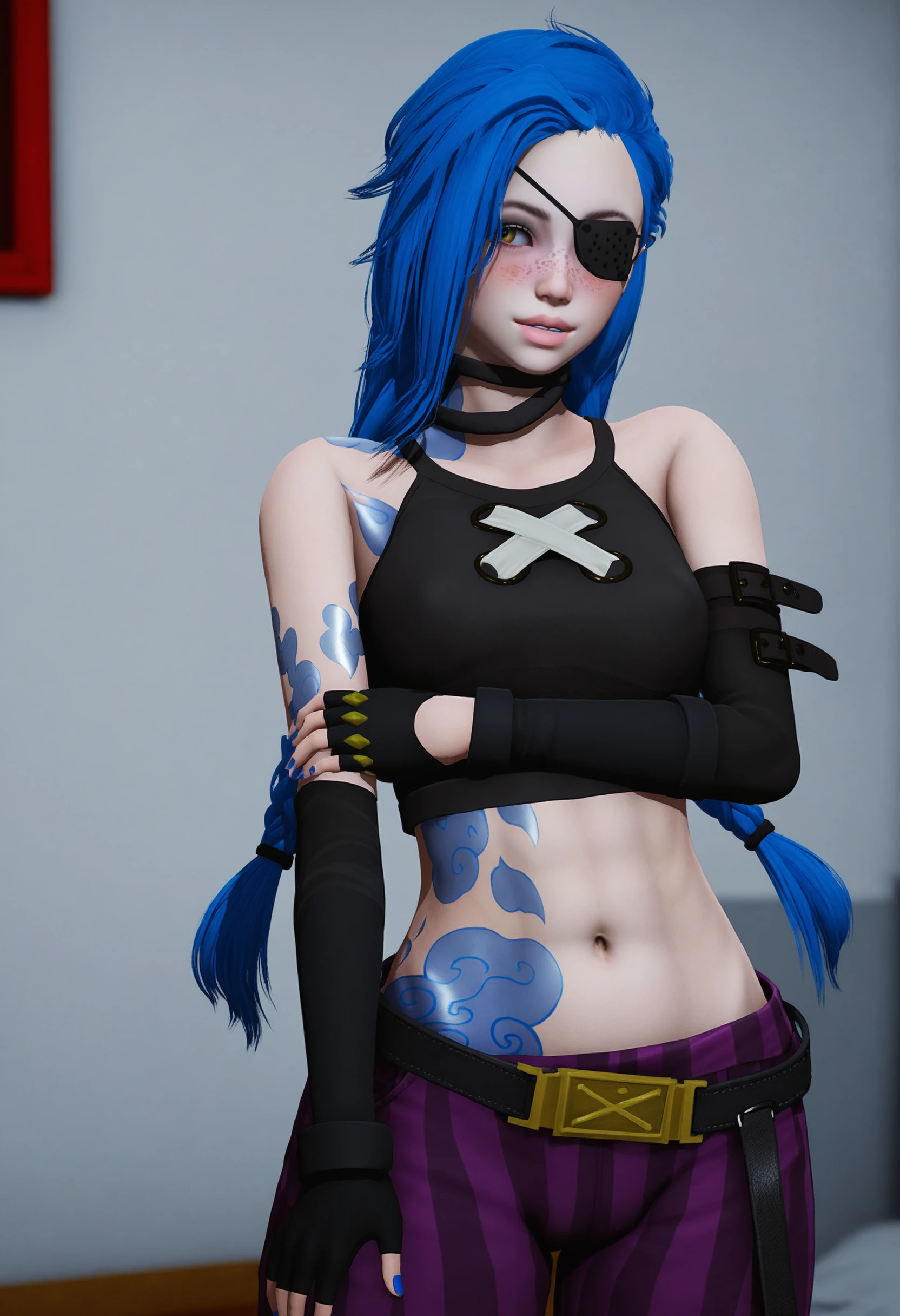 If you also tag: jinx \(league of legends\) you will get a very strong jinx outfit but it seems to affect the picture in a few ways.