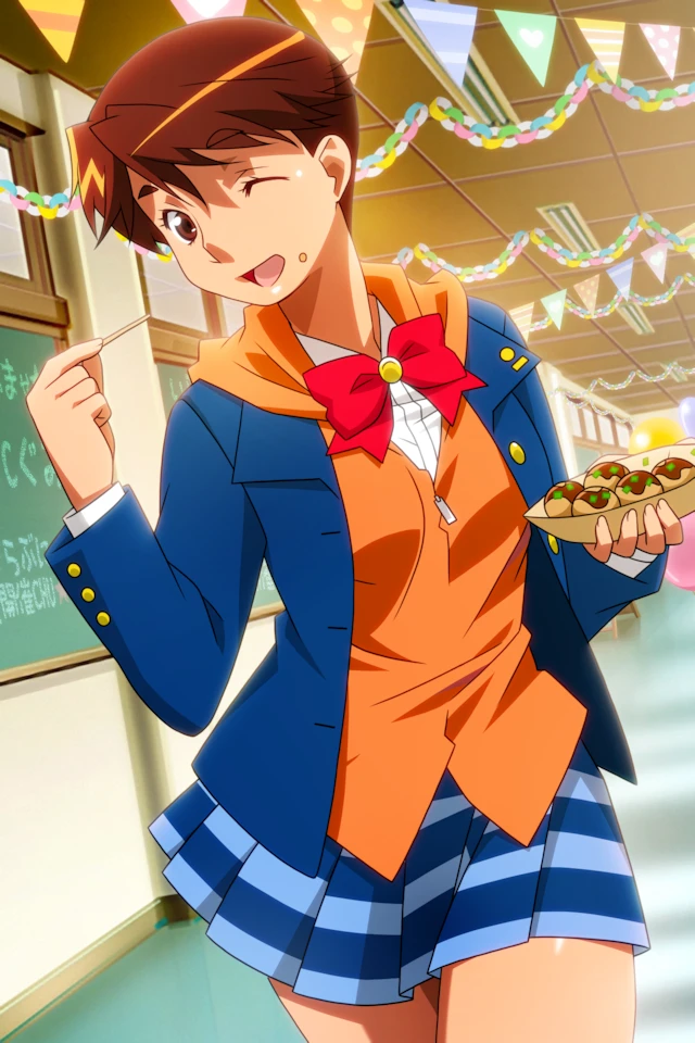 toono mizuki, tanaka ryou, brown hair, short hair, large eyebrows, dark-skinned female, tomboy, brown eyes, large breasts
