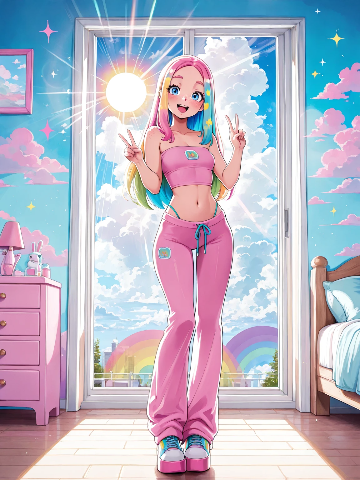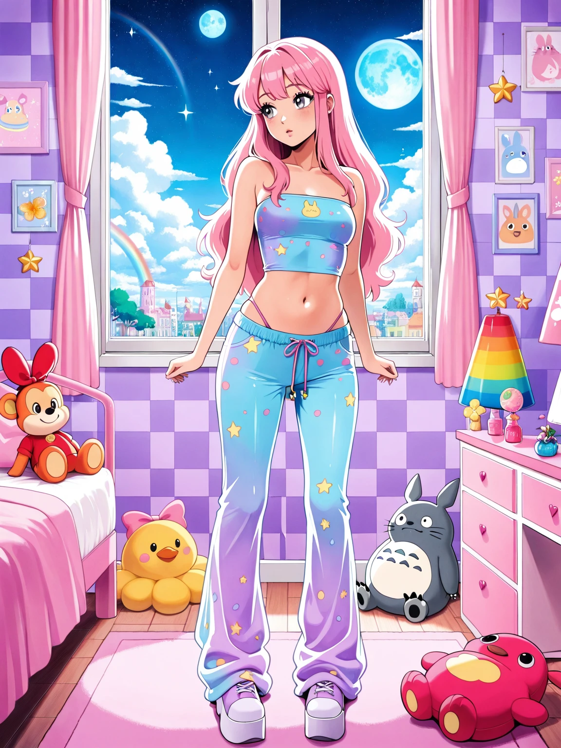Pink sweats, tube top, pants,Pokemon print sweats, tube top, pants,Matching sweats, tube top, pants, color gradient,