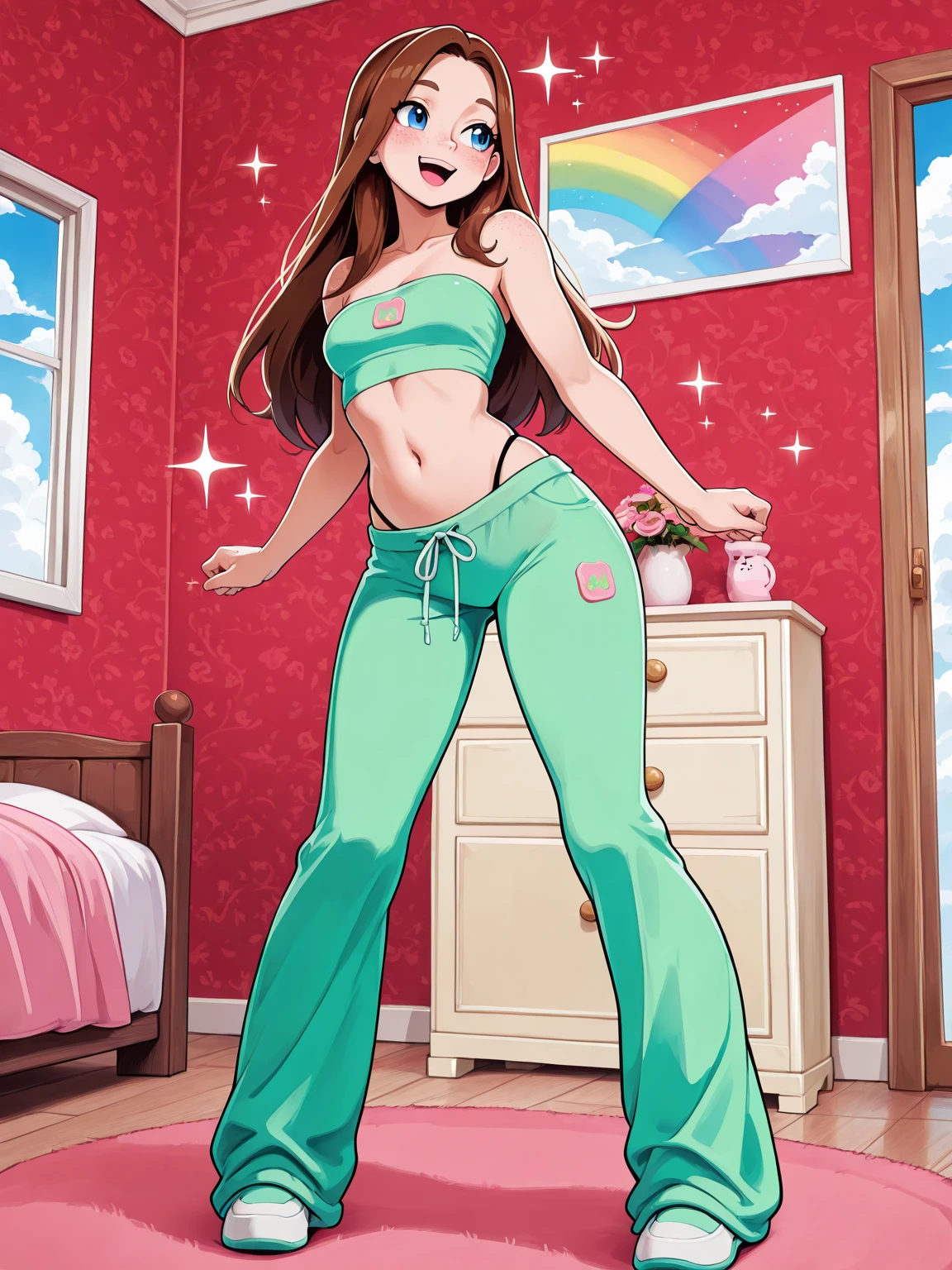<color and/or print> sweats, tube top, pants,Examples: