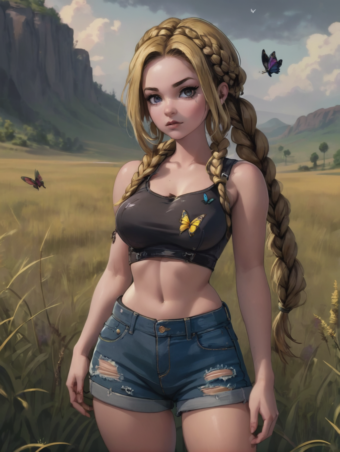 I recommend a low denoise (like .35) for hires fix. Just don't use adetailer at all, because there's really nothing for it to sharpen and the results look cruddy.