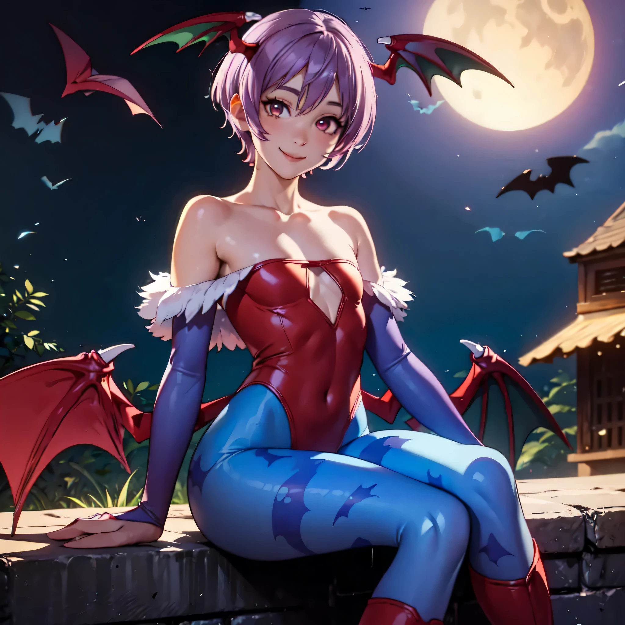 Lilith, short hair, purple hair, demon girl