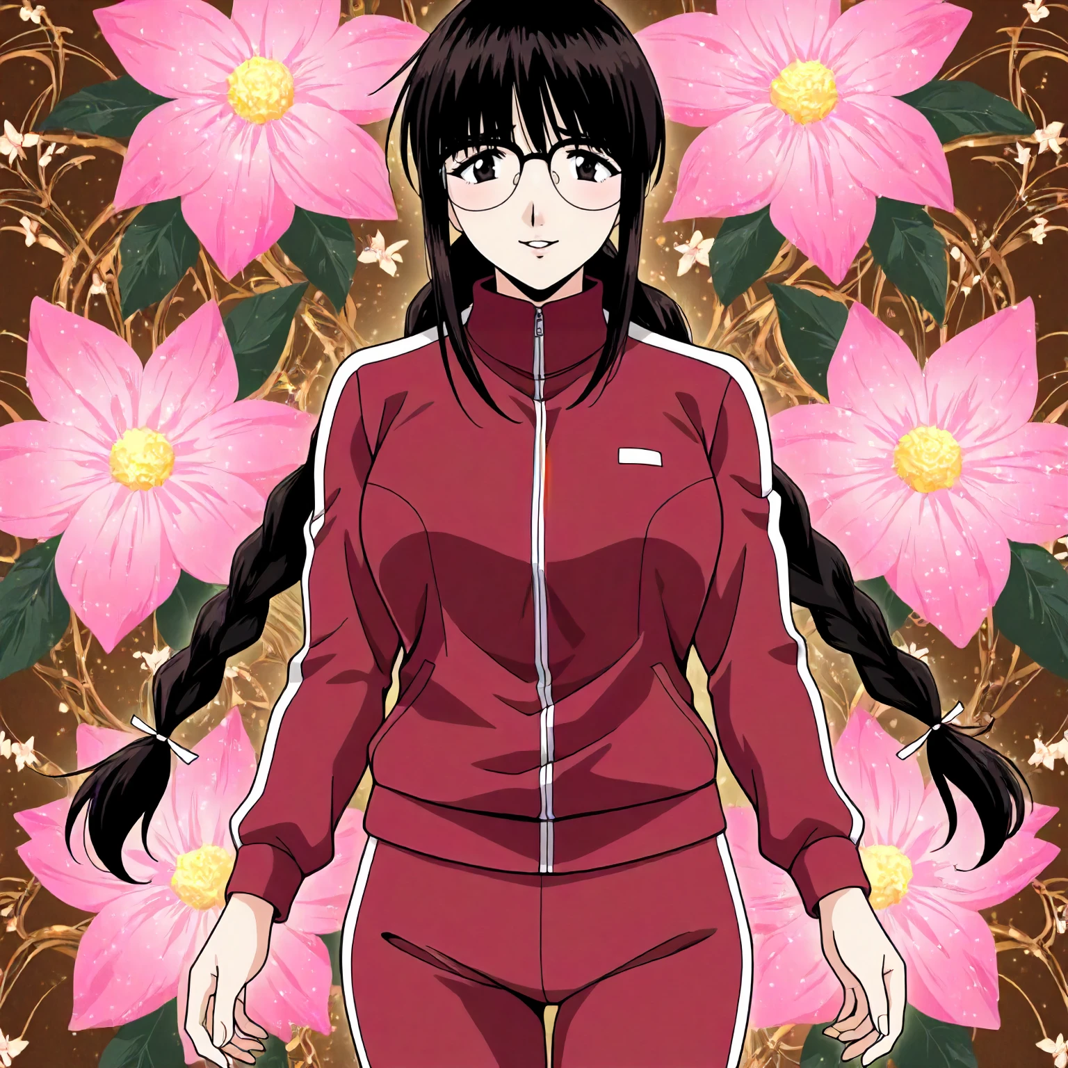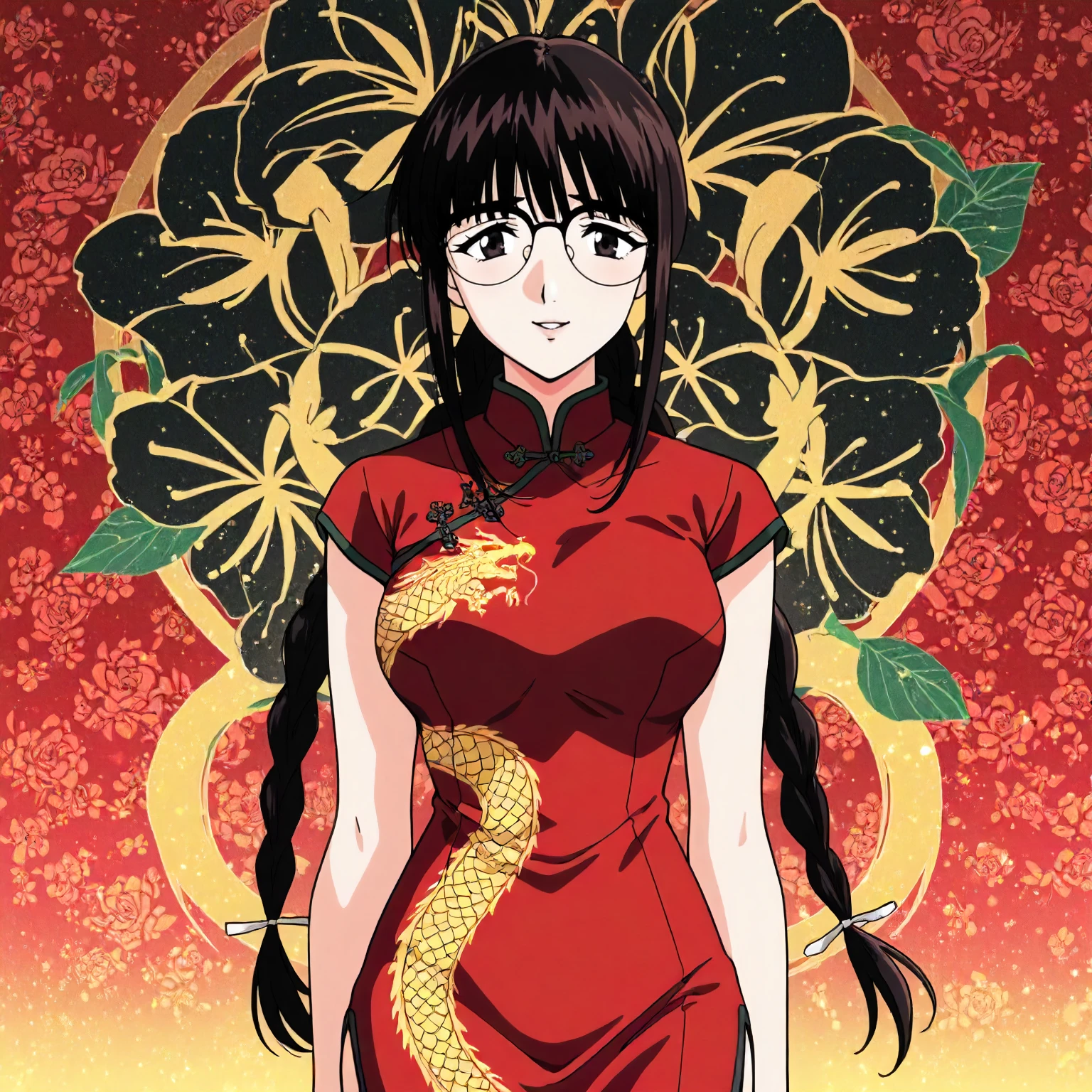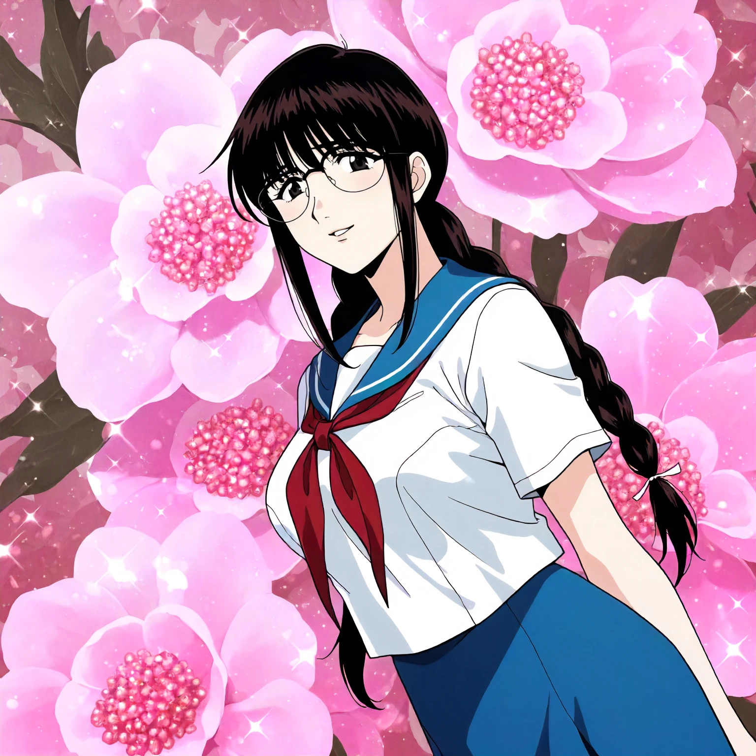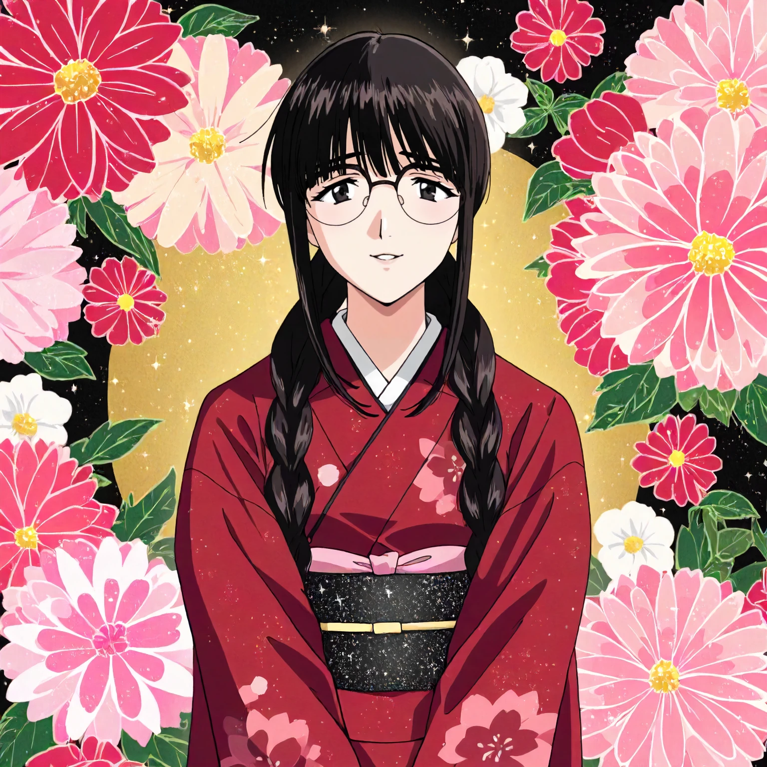 anime coloring, someya_kiyoko\(hexa\),1girl,brown black hair,twin braids,sidelocks,black eyes, glasses,