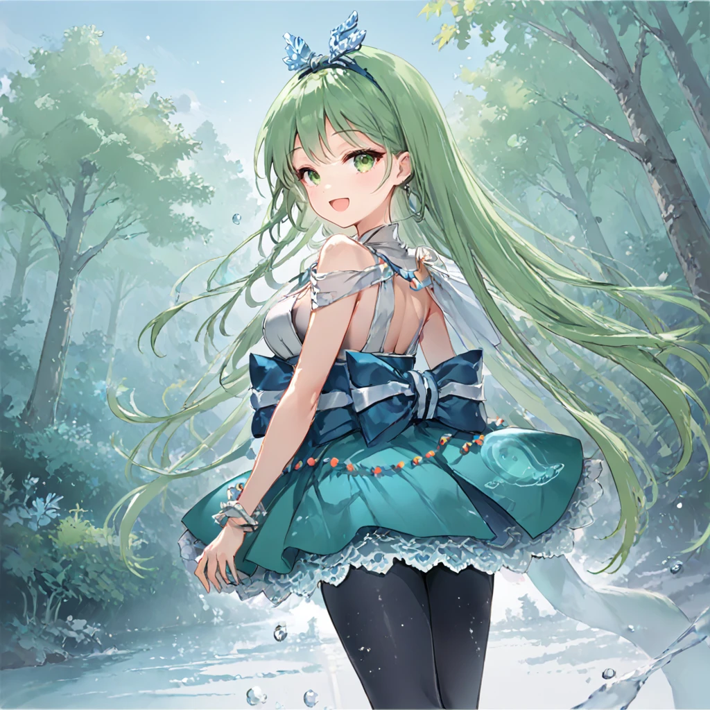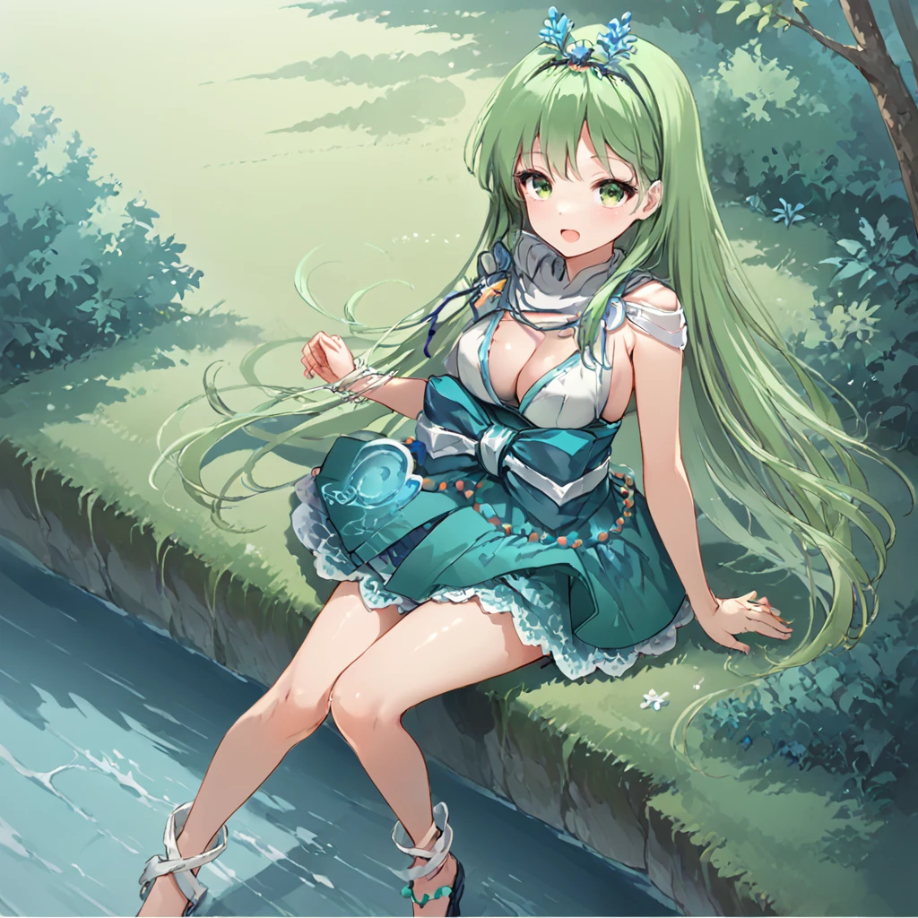 chikagi, green hair, twintails, green eyes, long hair,Outfit trigger