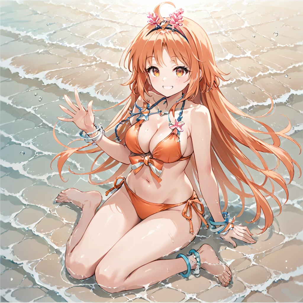hibiki, orange hair, ahoge, orange eyes, short hair,