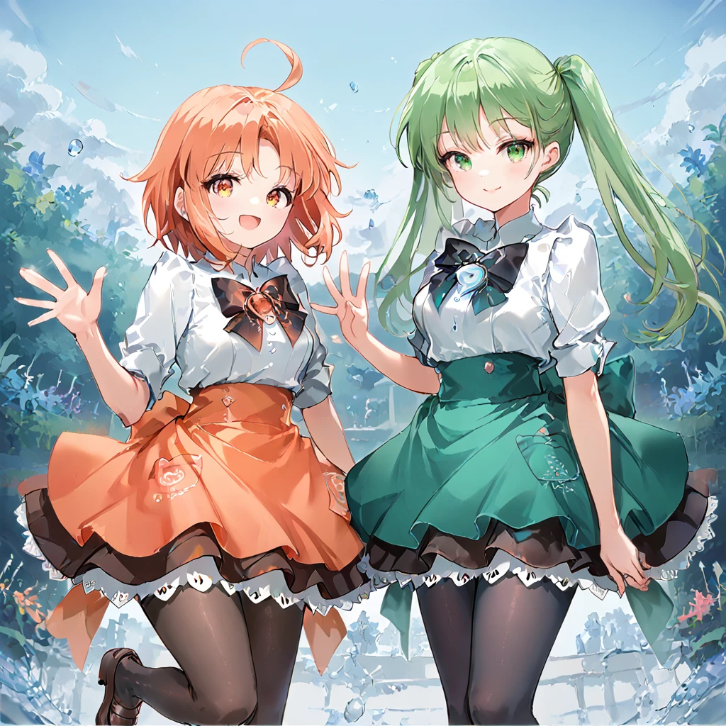 maid uniform, white shirt, pantyhose, green skirt, Asc 2: