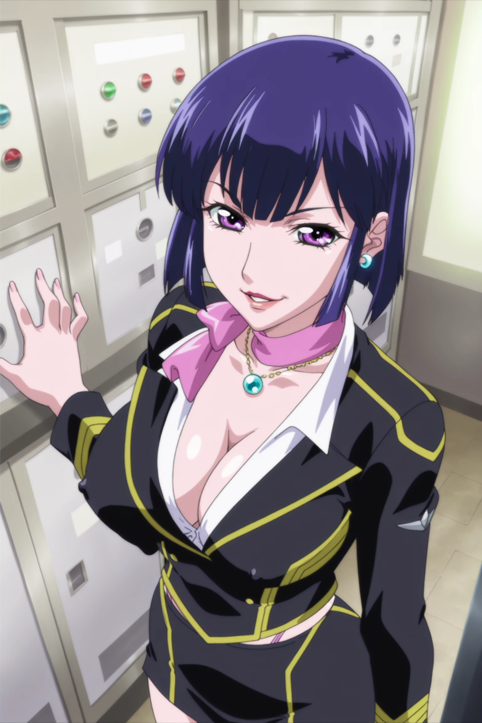 star_jewel _Reiko_Kanna, blue hair, short hair, blue eyes, parted lips, ?????????????, earrings, necklace, military uniform