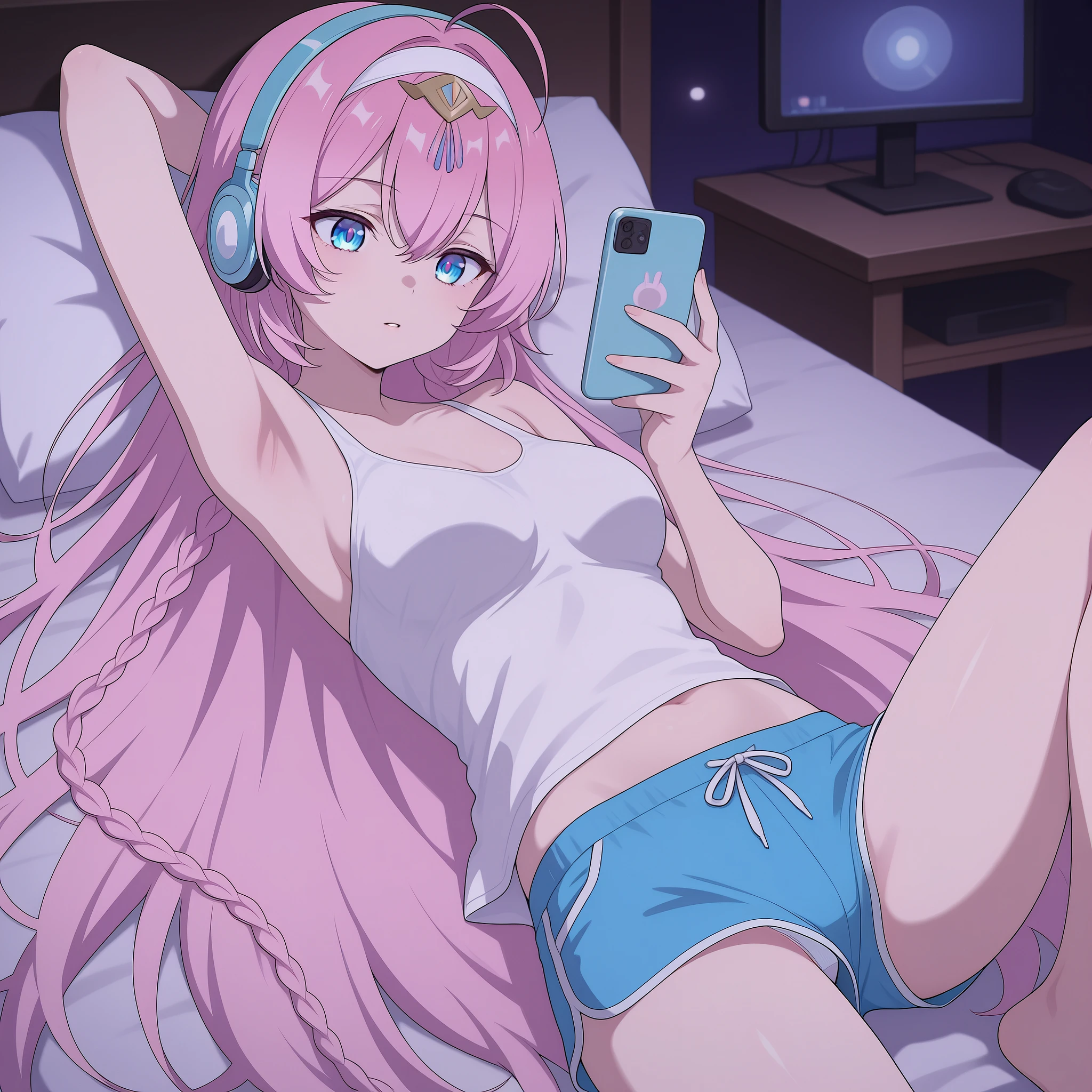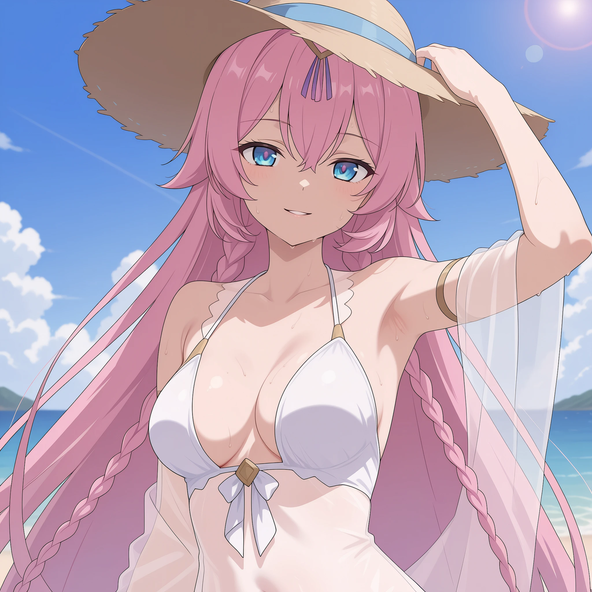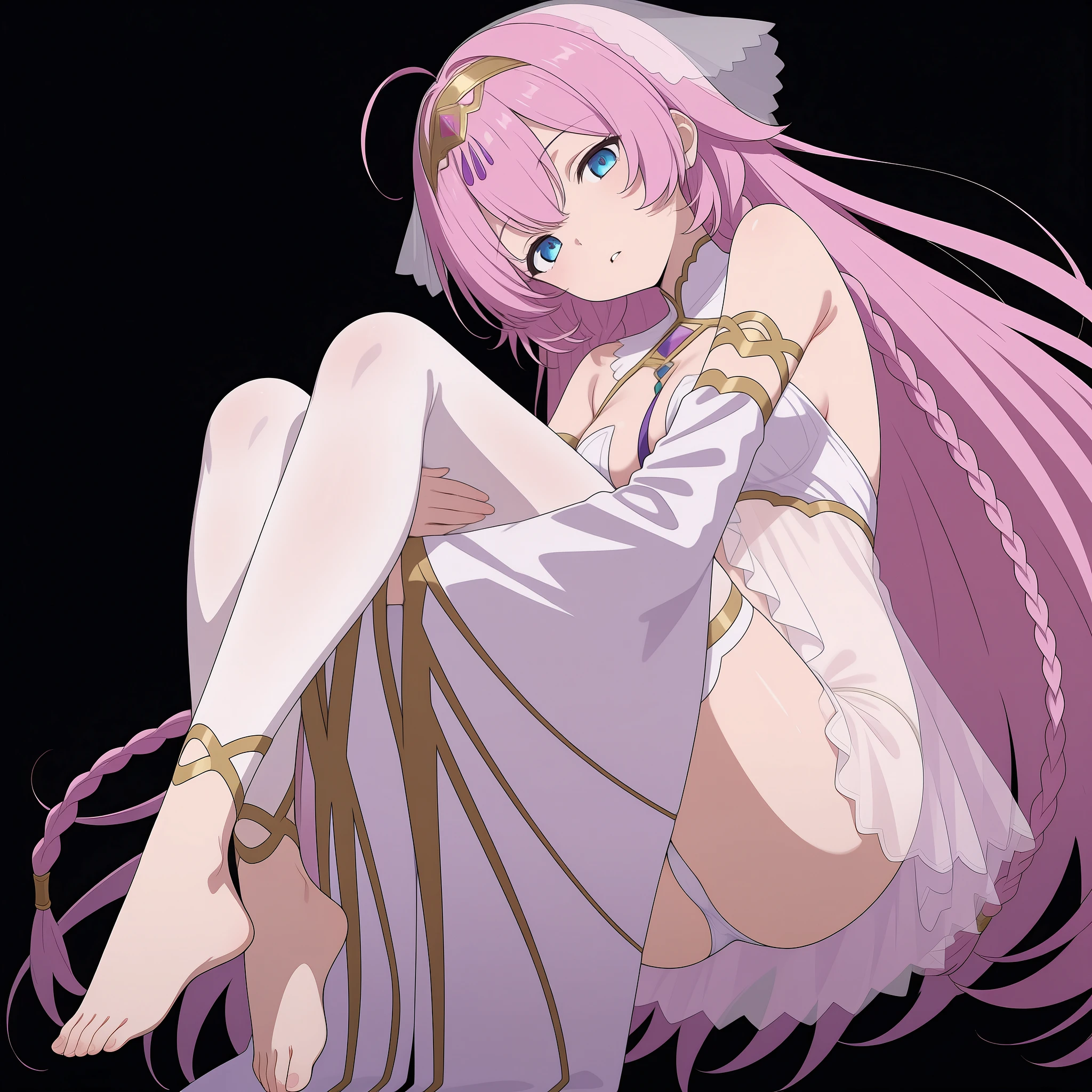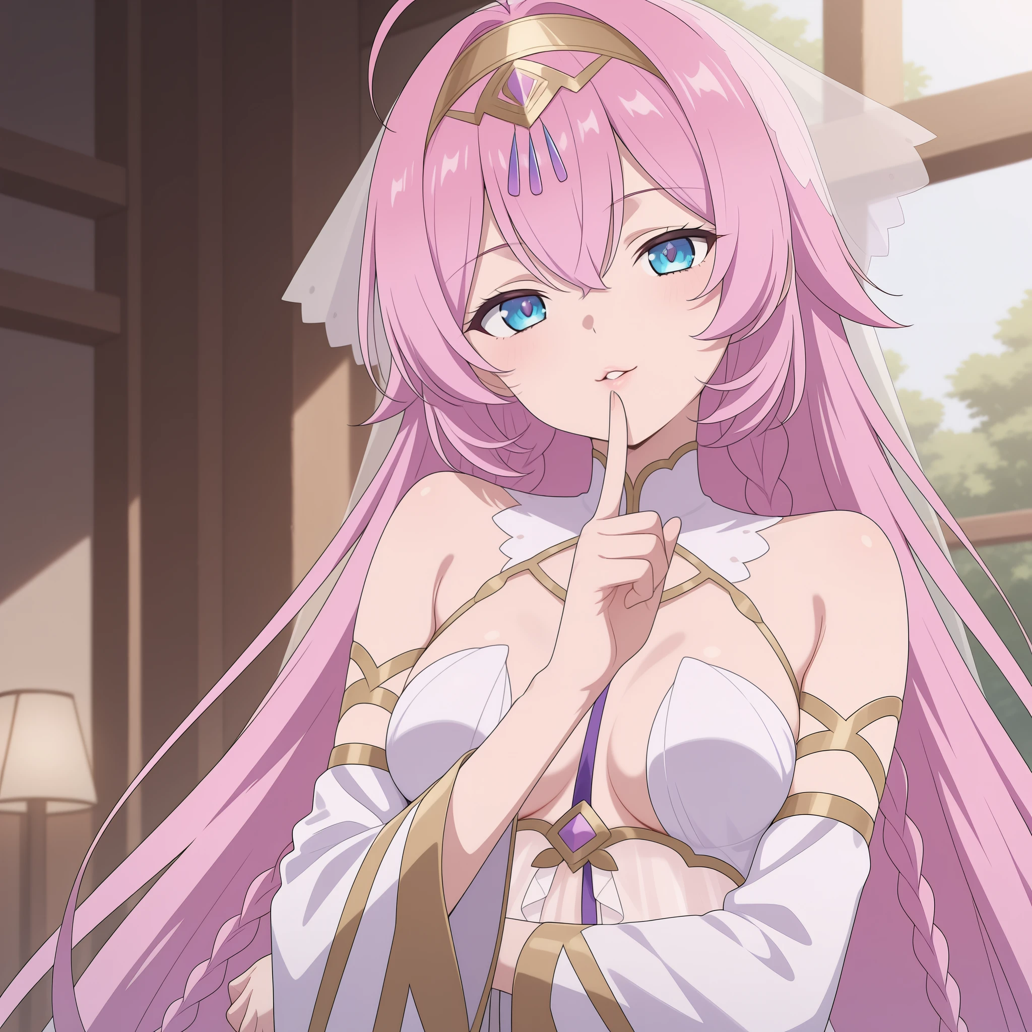 Trigger: e7wmtenebAppearance: blue eyes, pink hair, very long hair, braids, double parted bangs, ahoge, medium breasts