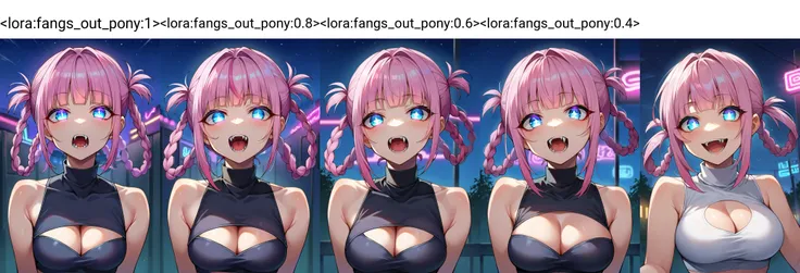 This SDXL and Pony Diffusion Concept LoRA is intended for generating vampires, oni, and kemono illustrations with fangs. ᵥ_ᵥ