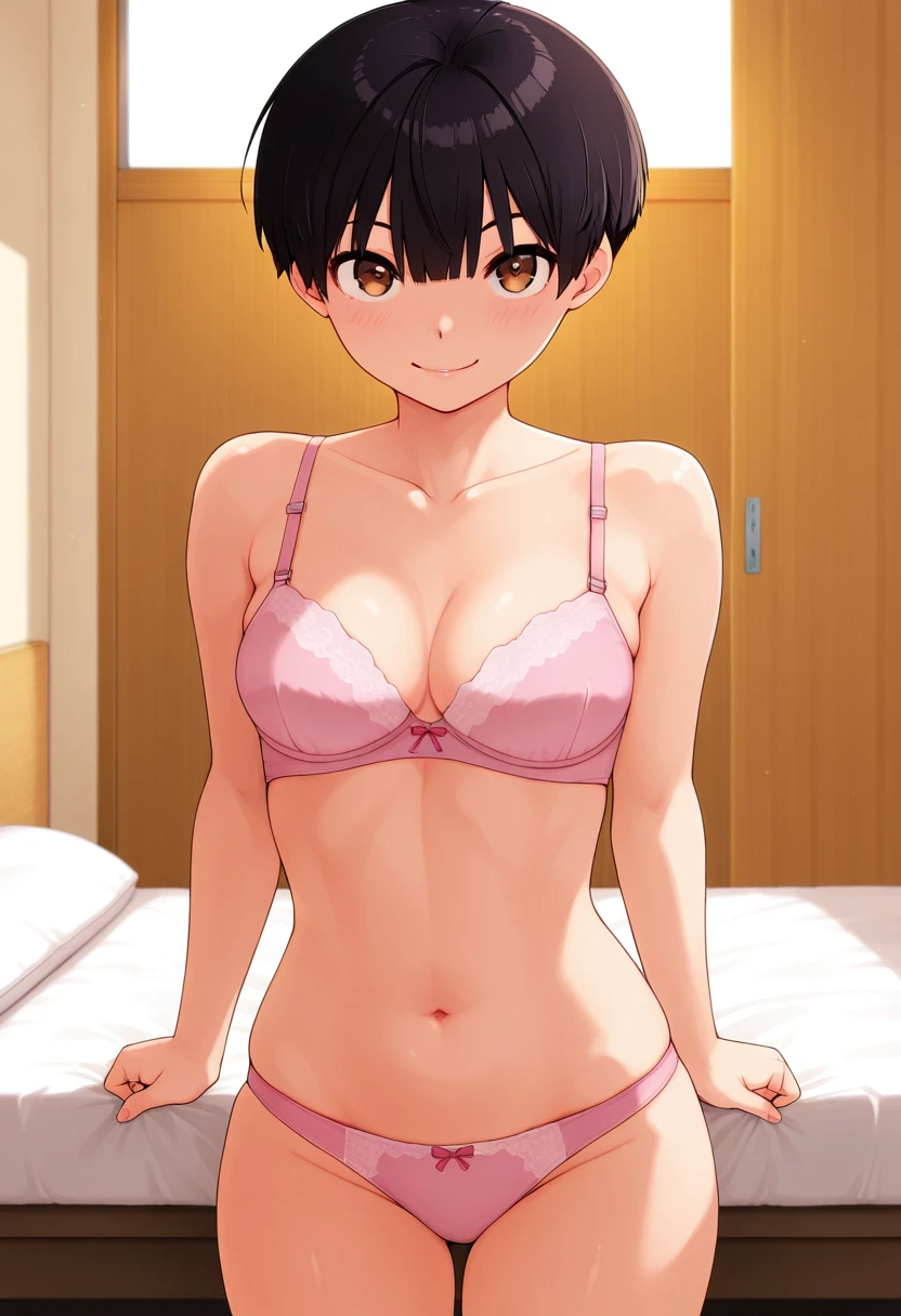• kanente, short hair, very short hair, bangs, medium breasts, tomboy,