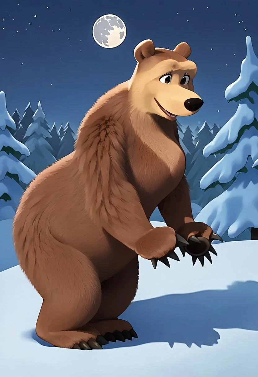 Lady_Bear, female bear, grizzly bear, brown fur, brown eyes, black nose, four fingers, claws, breasts, fat,
