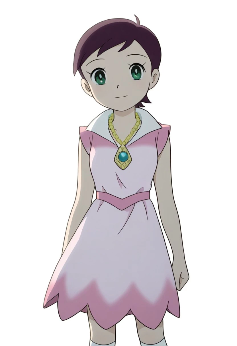 necklace, pink dress, bead necklace, white kneehighs, sleeveless, collars,