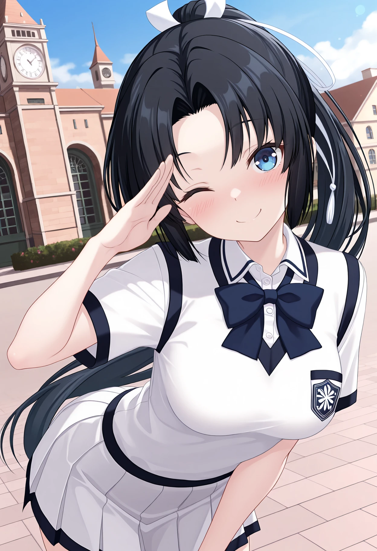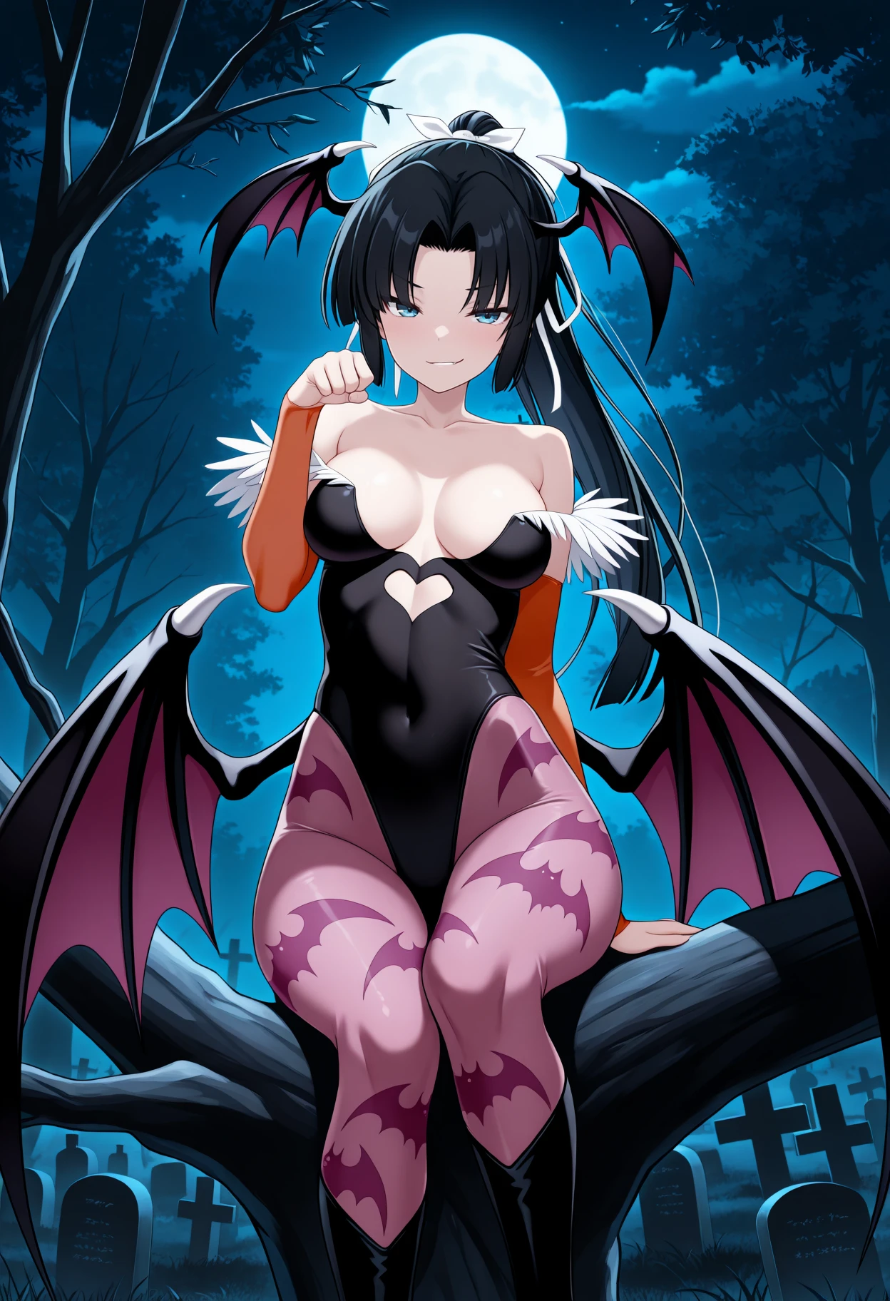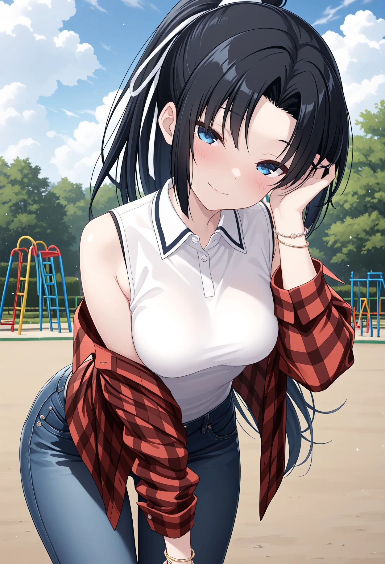 KJOyoshitsune, black hair, blue eyes, parted bangs, long hair, ponytail,