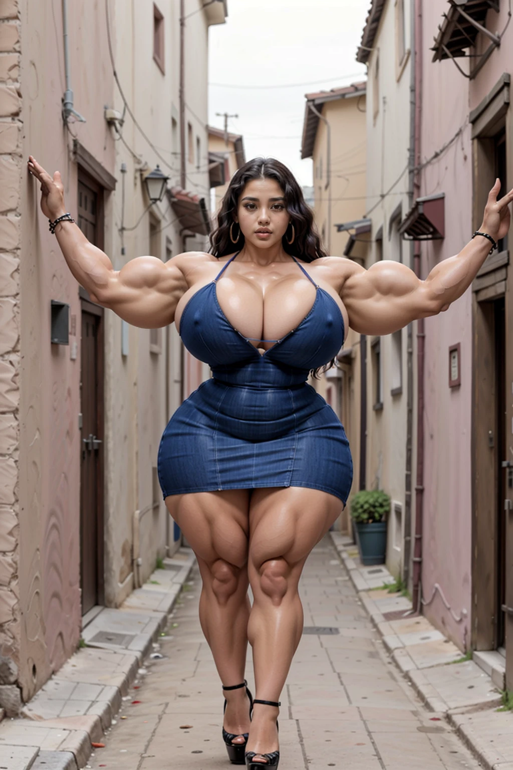 Eventually I decided I'd be interested to see what happens if I trained a Lora off some of the images. This is the result - it gets a certain look, which is a lot like my previous muscle bimbo lora, but with a lot more mass.