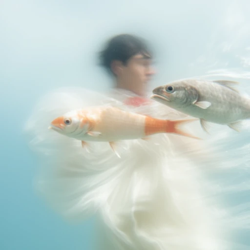 Underwater photography with a dreamlike, distorted, and surreal style.