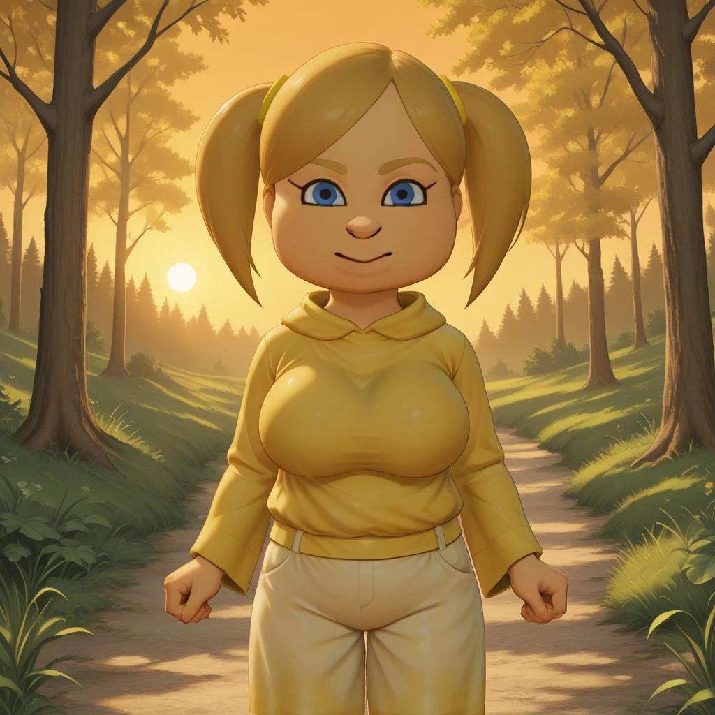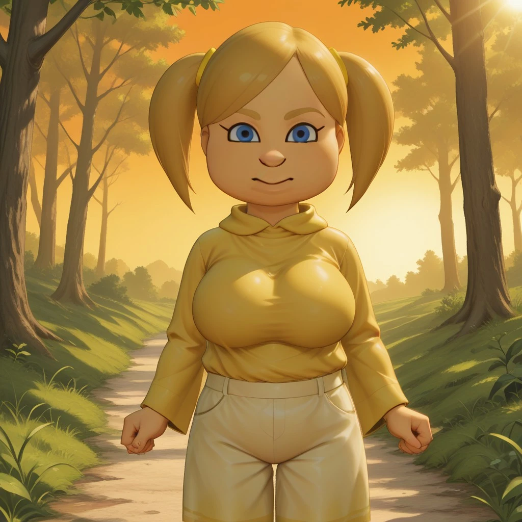 MinkaOC, 1girl, chubby, plump, slightly obese, blonde hair, twintails, blue eyes