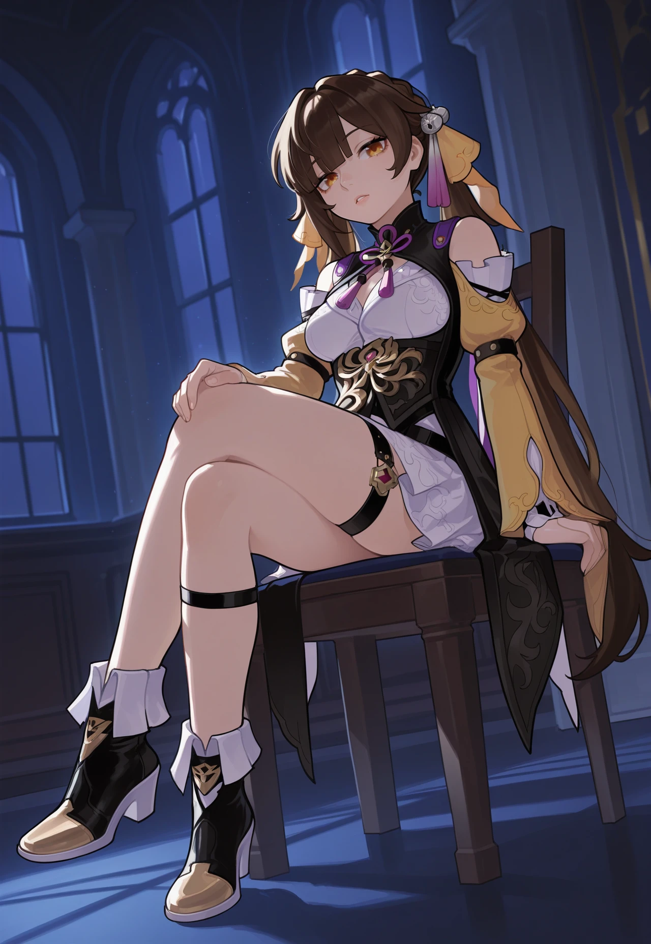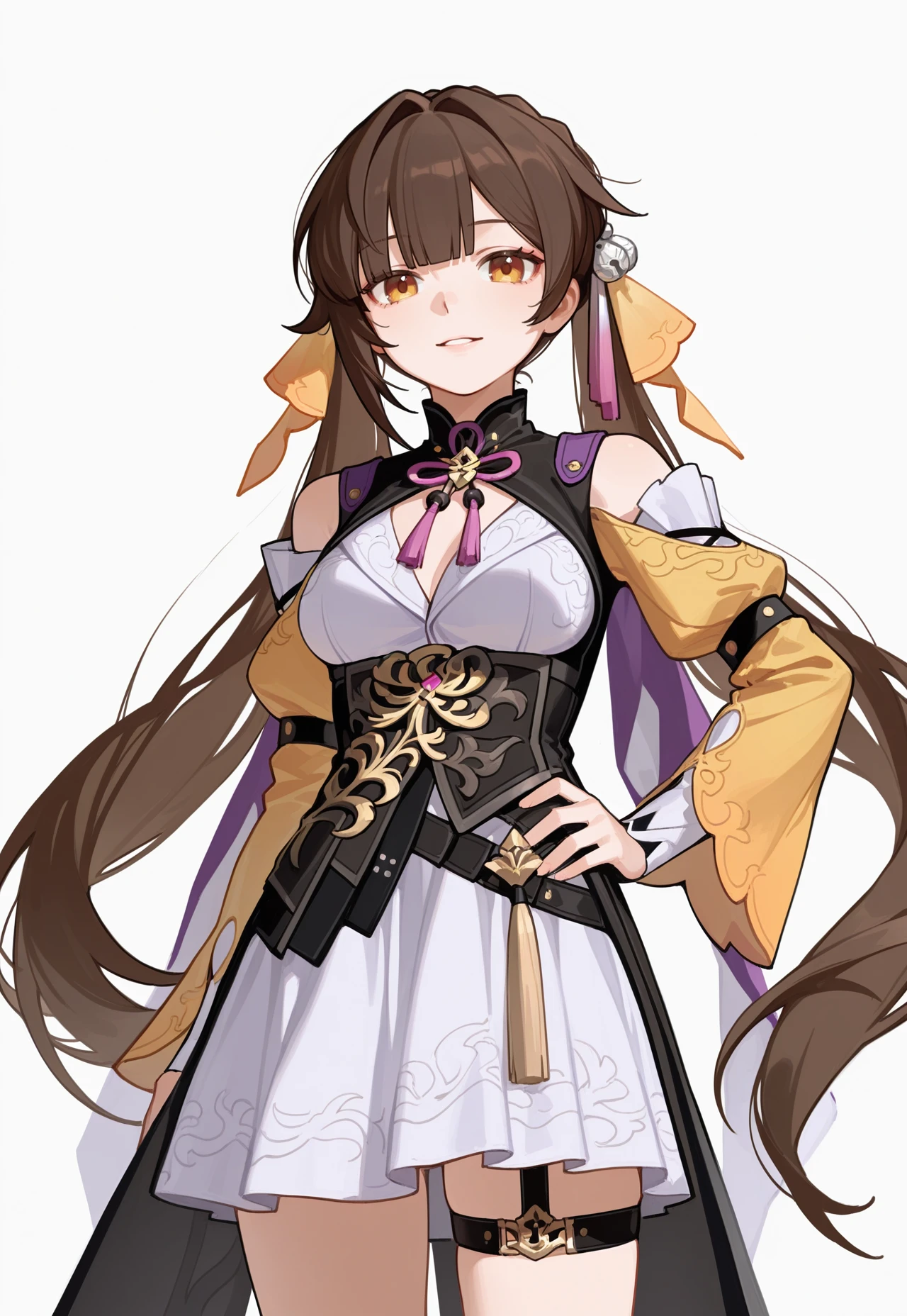 dress, bare shoulders, detached sleeves, shoulder cutout, thigh strap,