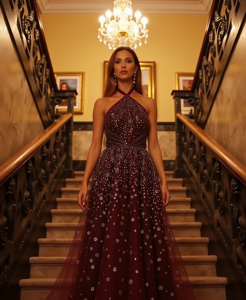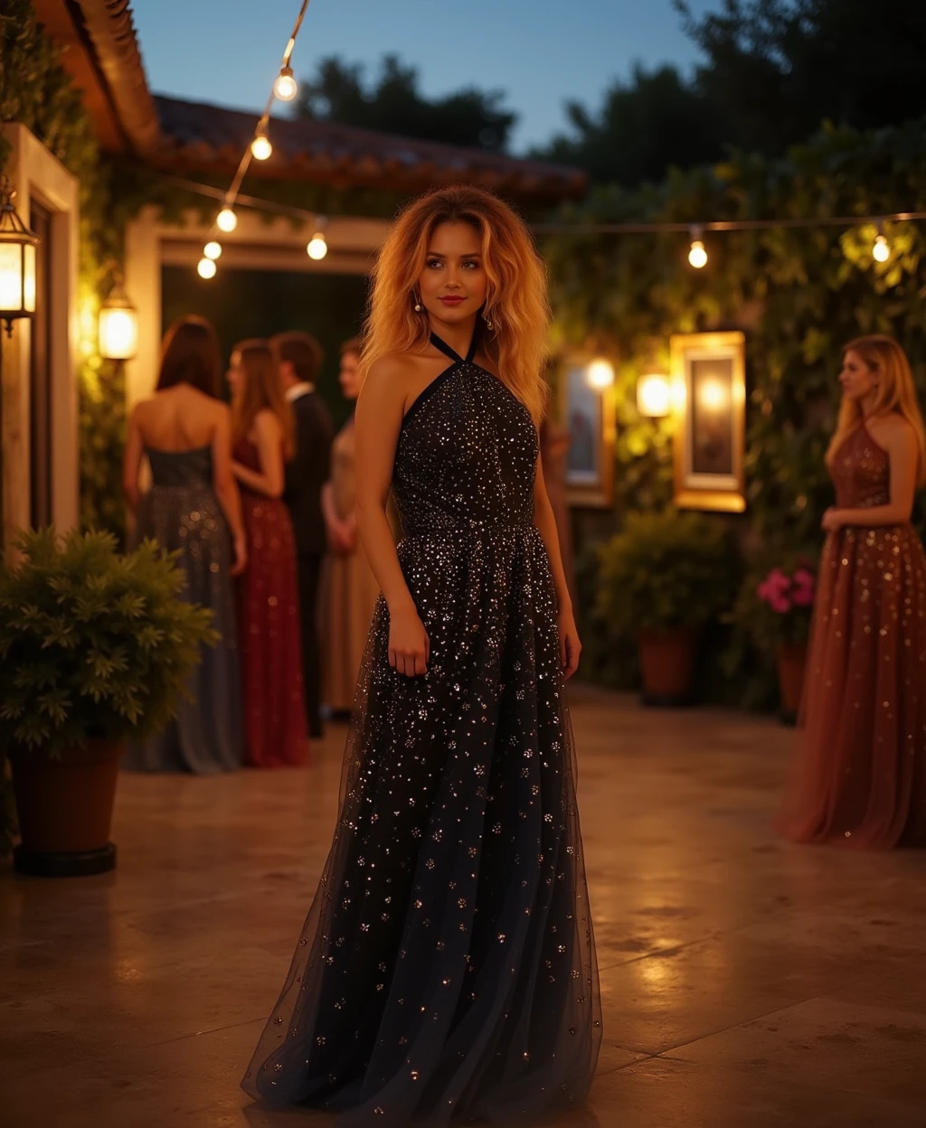 Marchesa Notte Ombré Glitter Tulle Halter Gown - v1.0