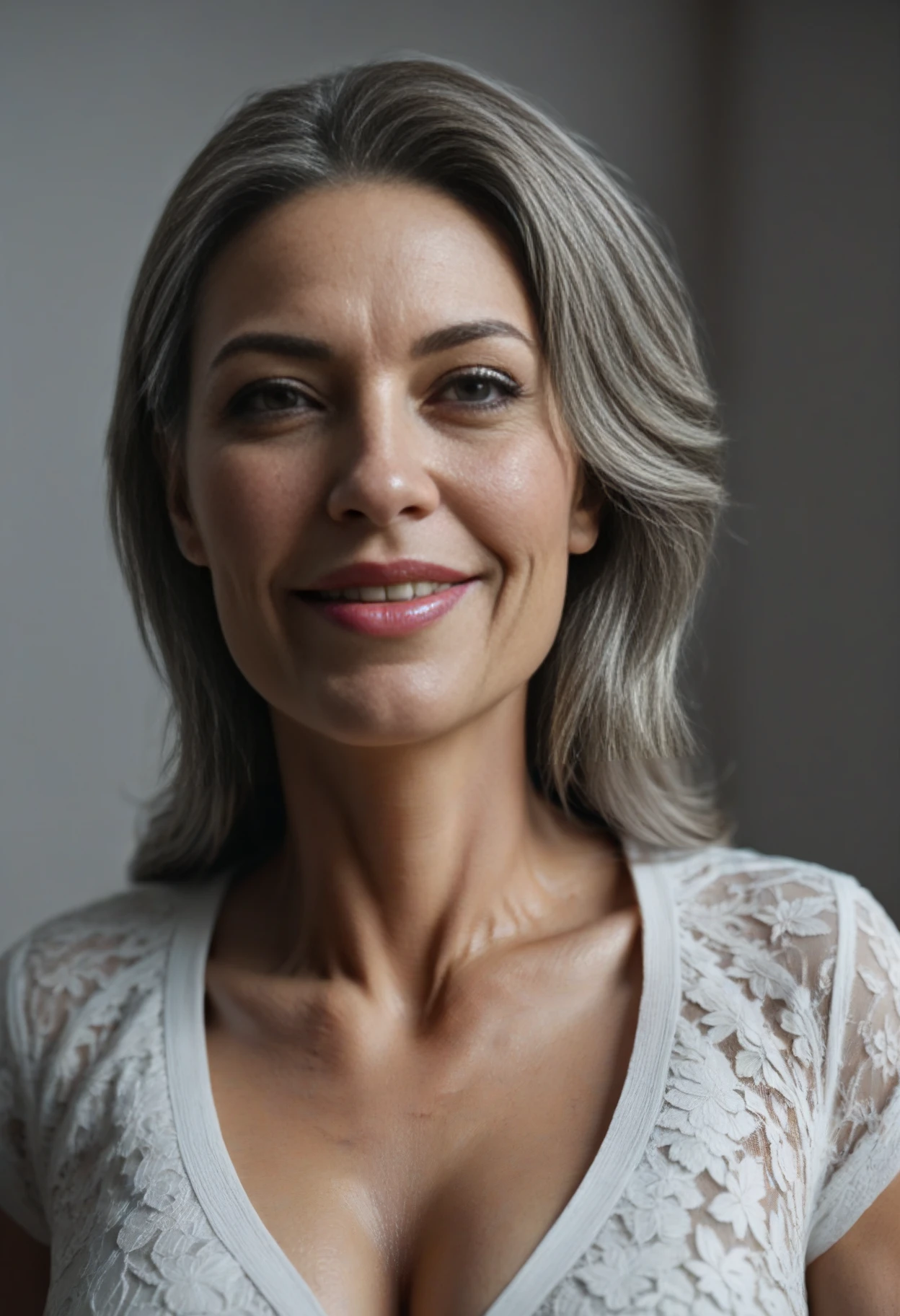 Realistic Detailing: High fidelity in capturing facial expressions, skin textures, and subtle nuances of a middle-aged blonde woman.