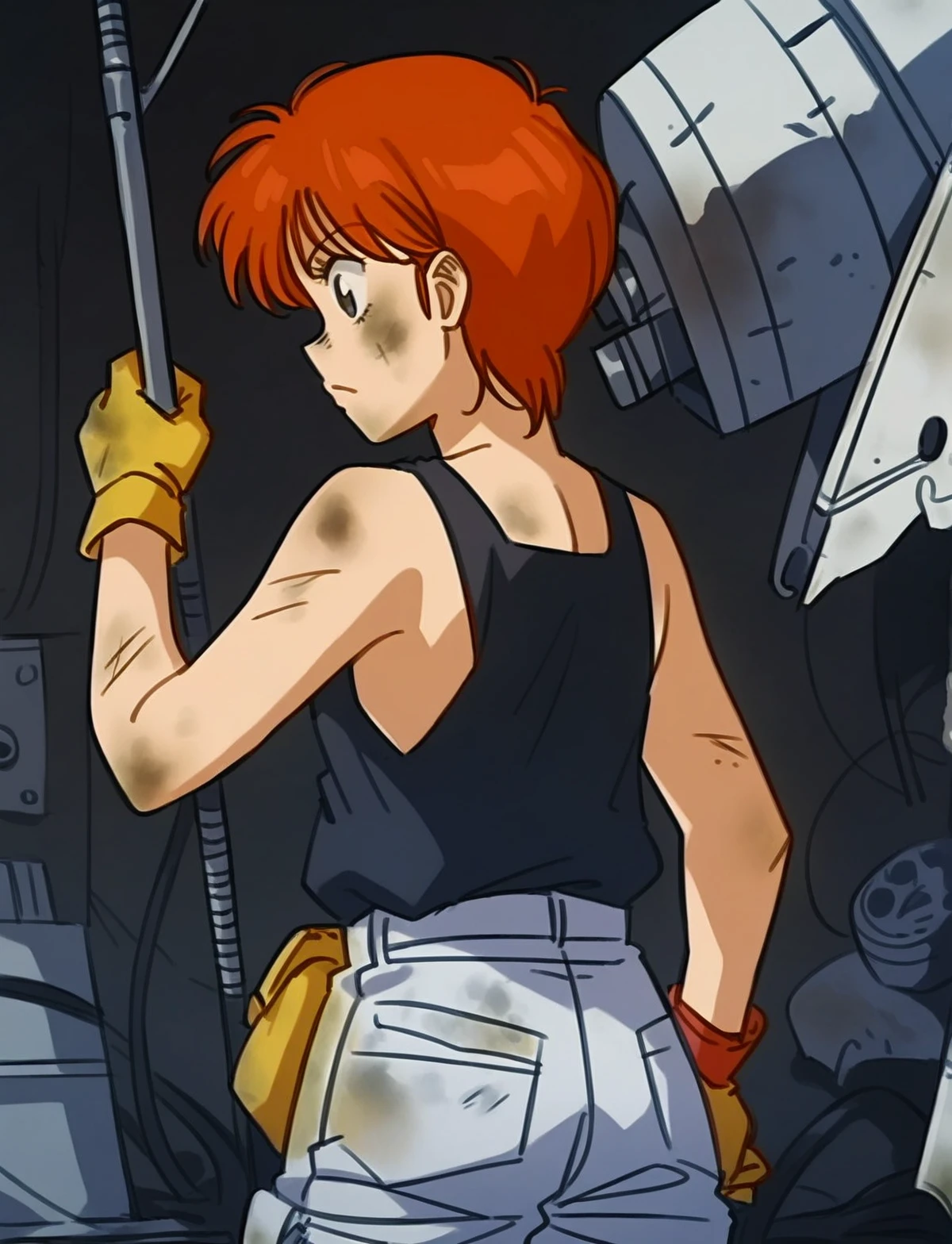 Usage: leonaozaki, source_manga, rating_safe, score_8_up, score_7_up, 1girl, short red hair,