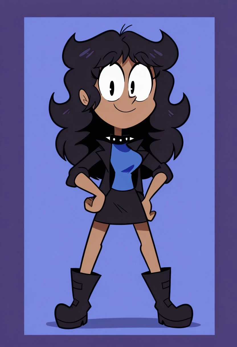 lilyoutfit_old, spiked collar, black jacket, , blue shirt, black skirt, black boots