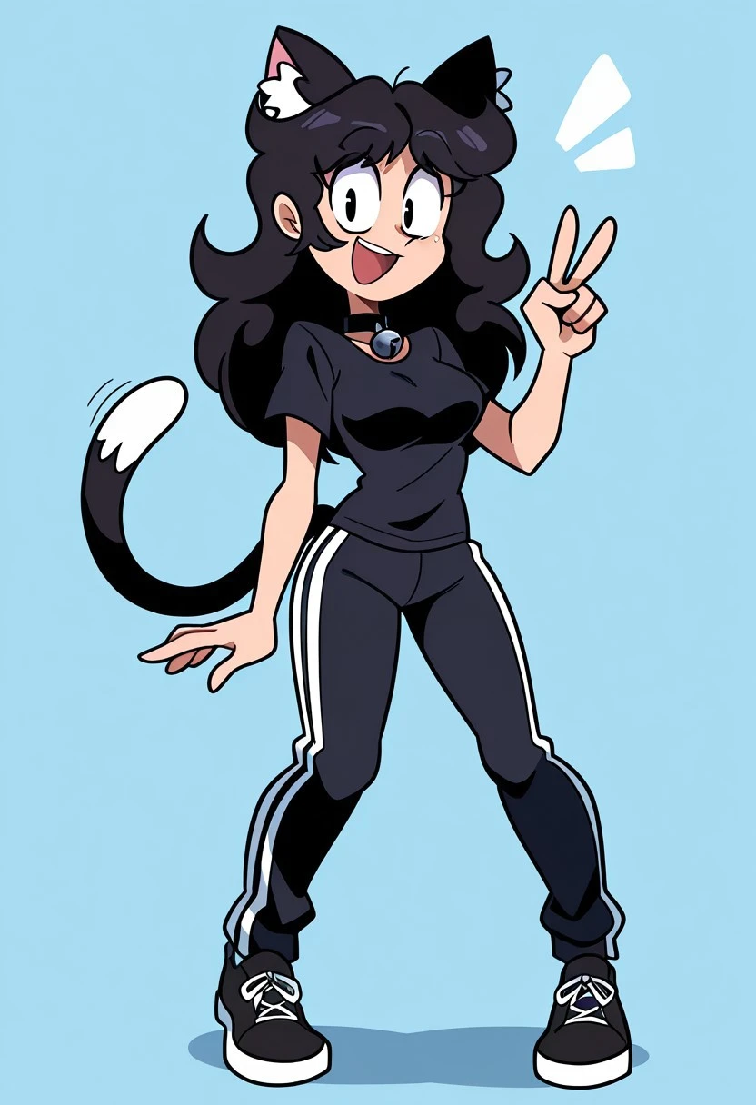lilyoutfit_new, neck bell, black shirt, short sleeves, black pants, track pants, black shoes