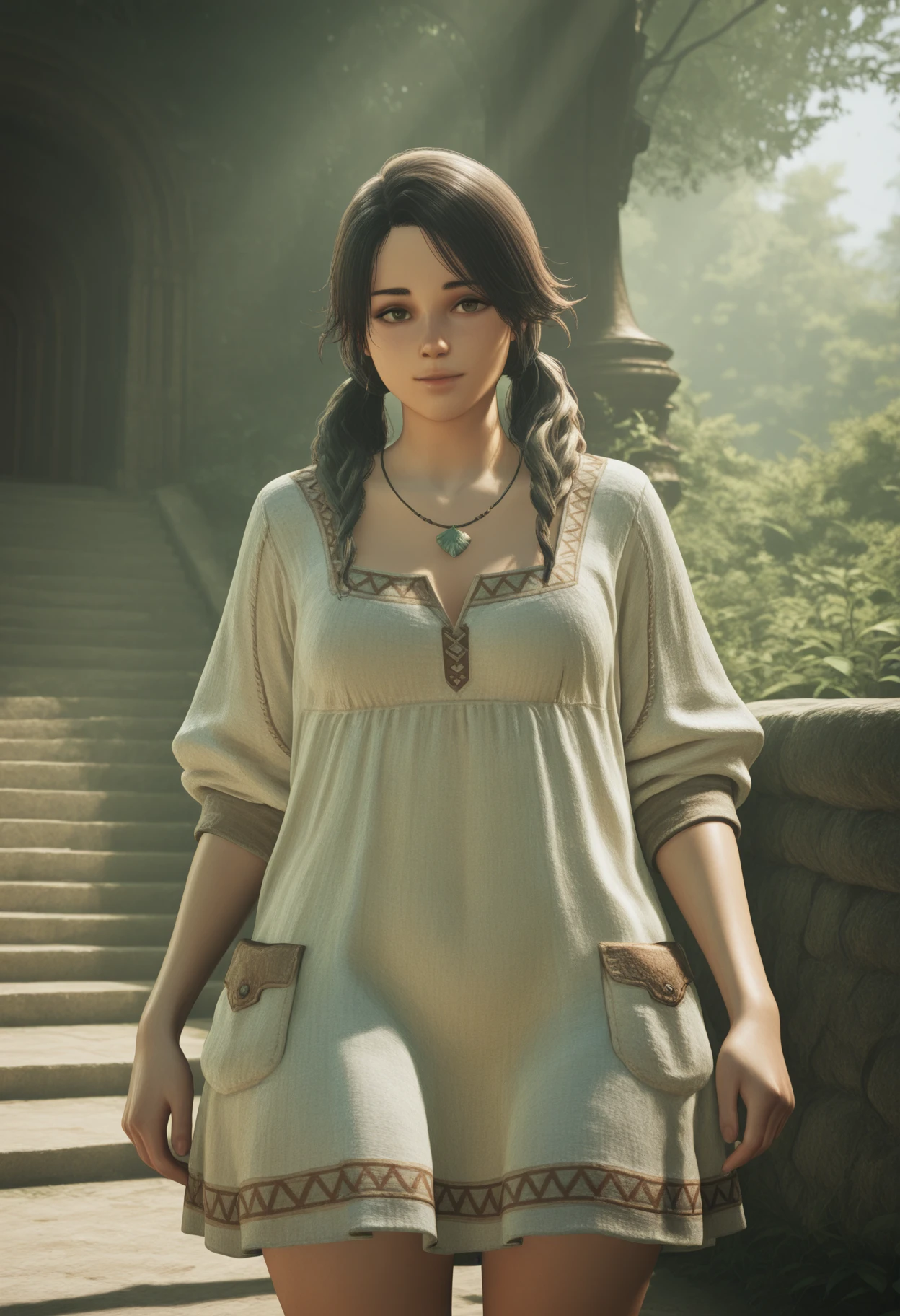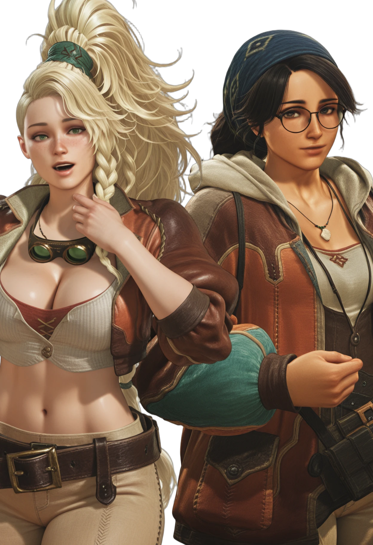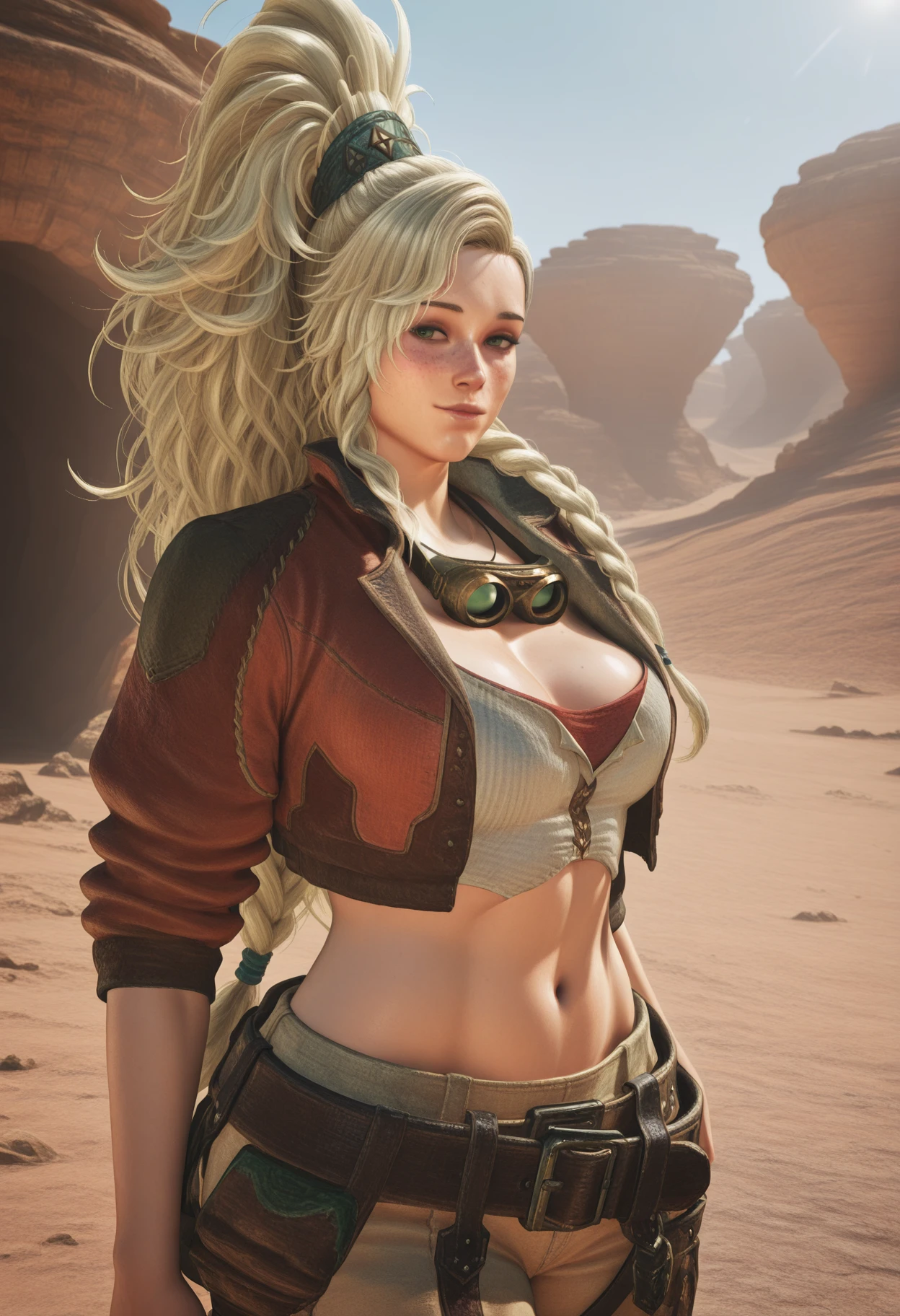 Triggerwords: gemma, mature female, very long hair, bangs, blonde hair, large breasts, high ponytail, single braid, hair ornament, green eyes,