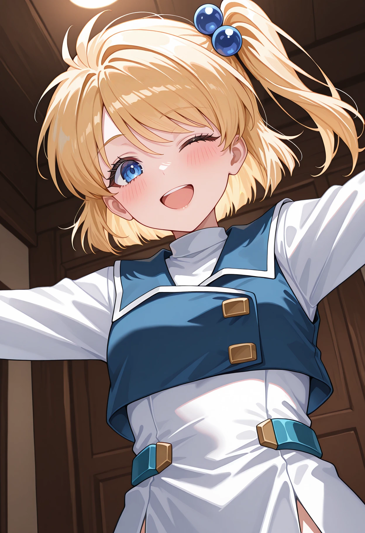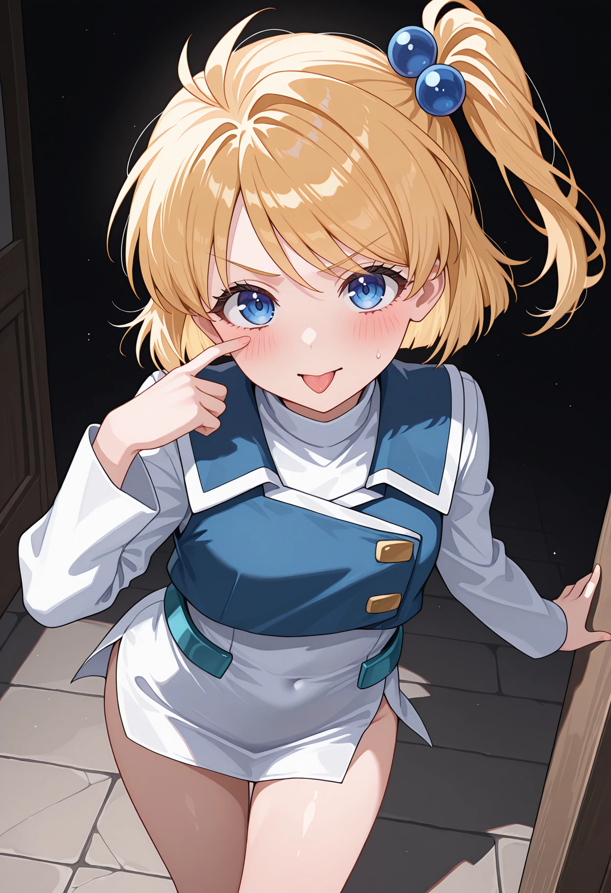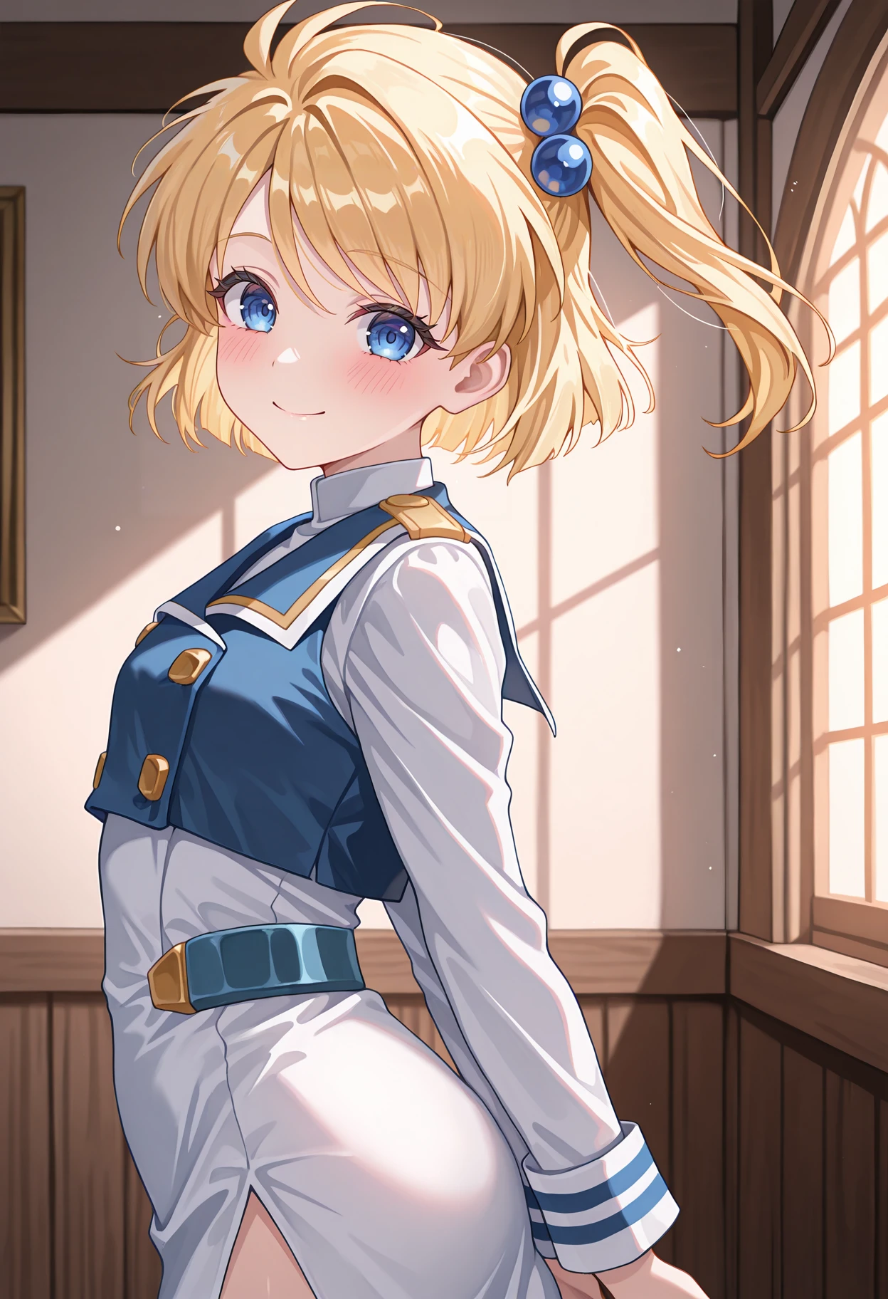 srtprecia, blonde hair, side ponytail, one side up, hair ornament, hair bobbles,